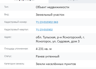 • Земельный участок на продажу, 8 сот., Ясногорск, Первомайская улица, 11