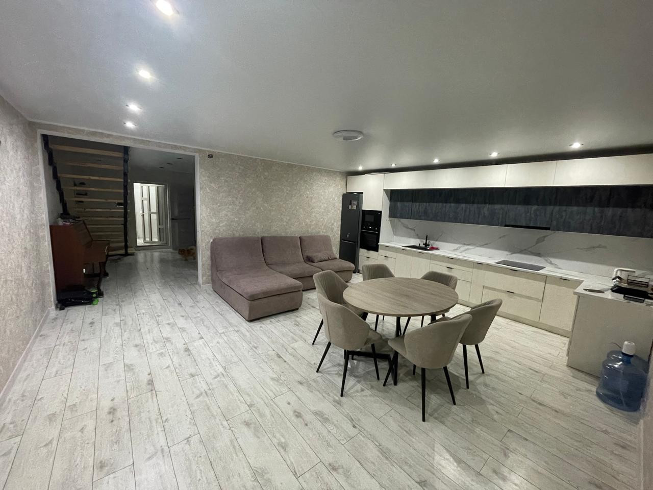 Очень удобное расположение.дом после полной перестройки 2 года назад(абсолютно все делалось из новых материалов). Первый этаж полностью тёплый пол. Бытовая комната, сан.узел 9кв.м, кухня-гостиная 34кв.м, спальня второго этажа 25кв.м, спальня 18кв.м, спальня 14кв.м, гардеробная, кабинет и сан.узел на втором этаже. Сзади дома огорожена площадка под бассейн и мангальную зону, вся территория облагороженна плиткой и закрыта забором. Видео домофон. Свежий ремонт.