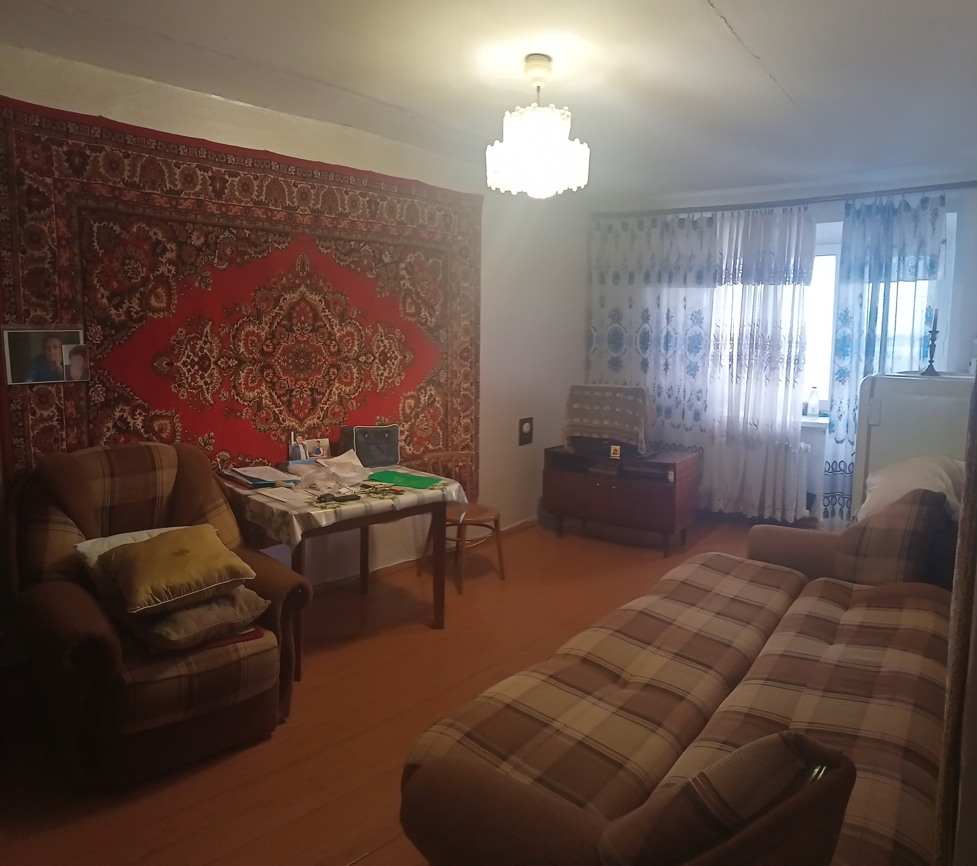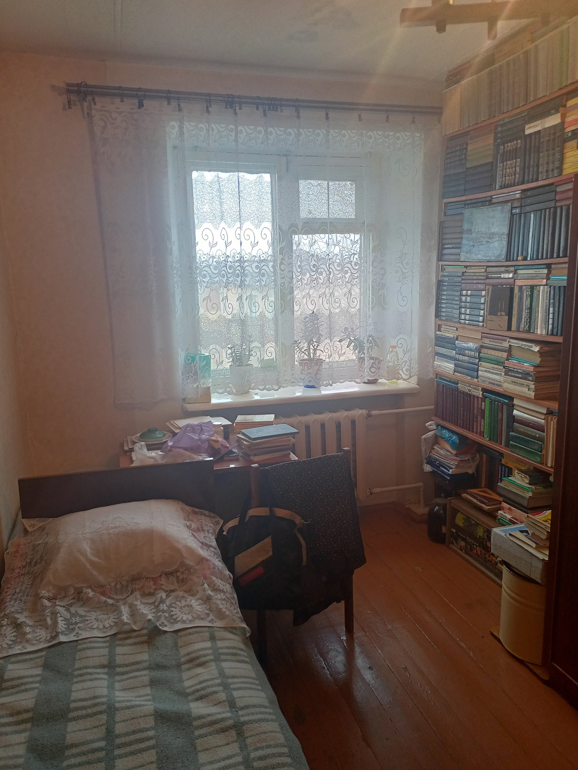 Квартира сквозная. Вид из окон : библиотека , площадь к.т. "Заря", двор.