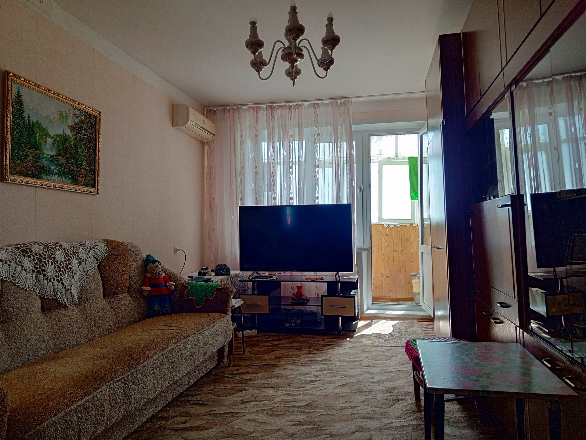 Стеклопакеты на окнах, трубы - ПВХ. Балкон застеклен.