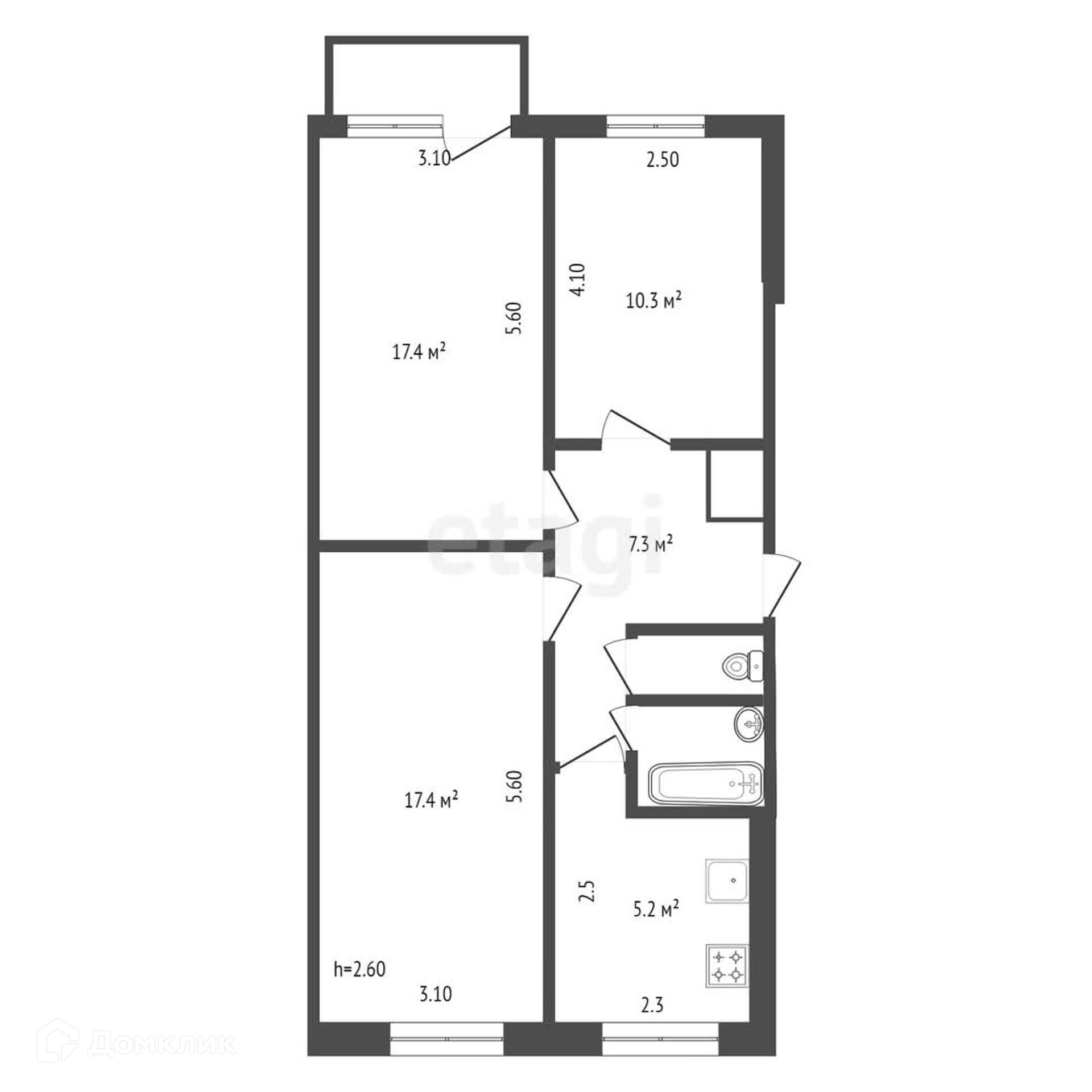 Общая площадь 61 м2