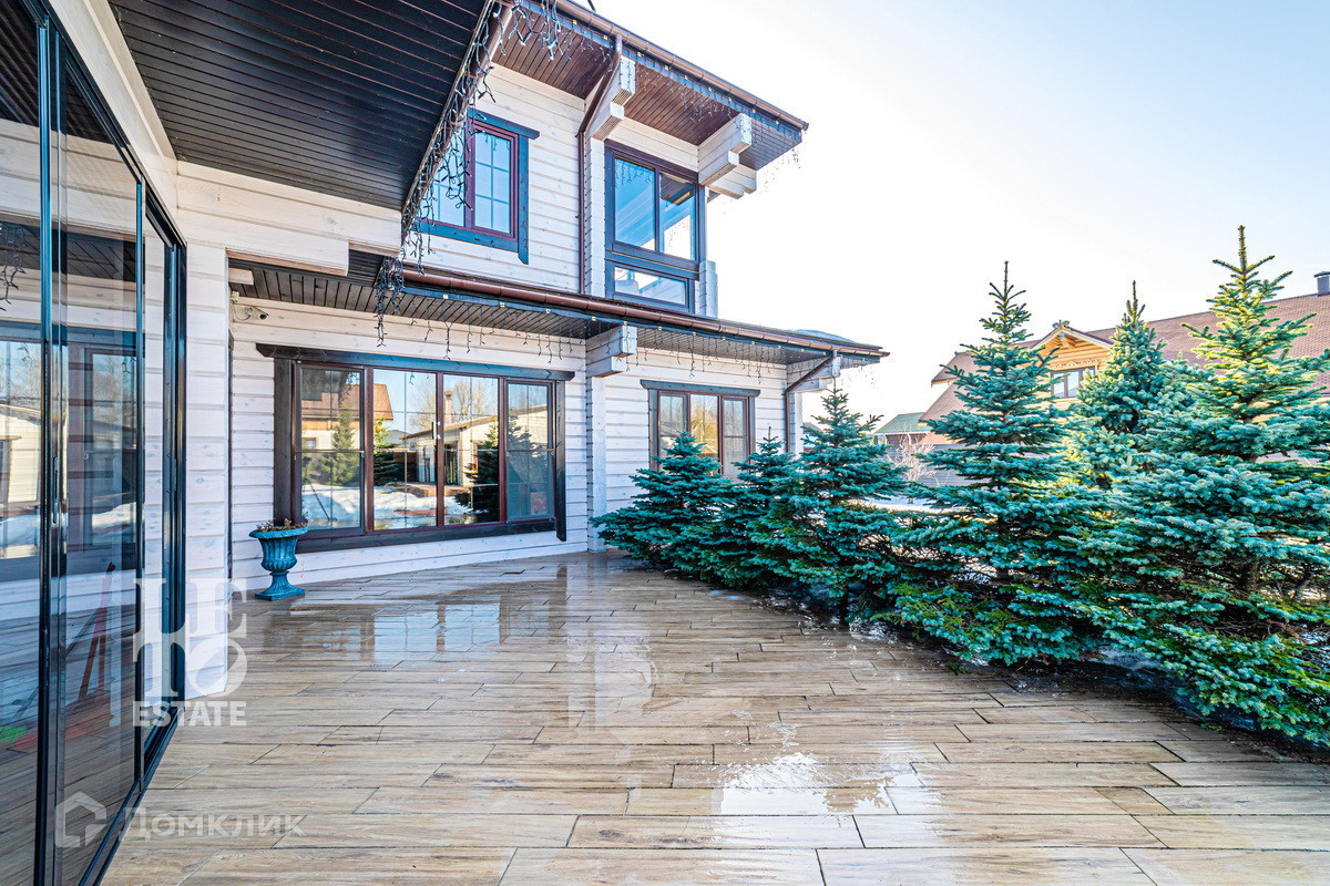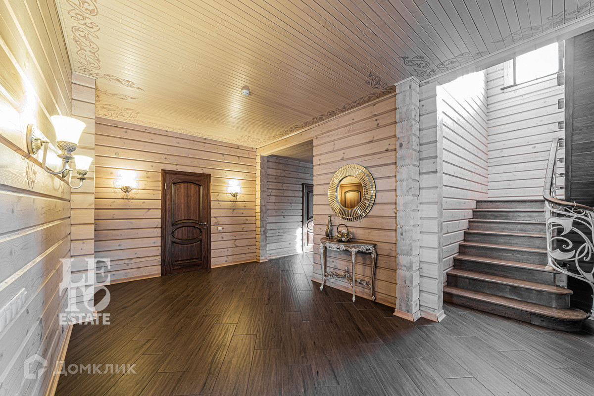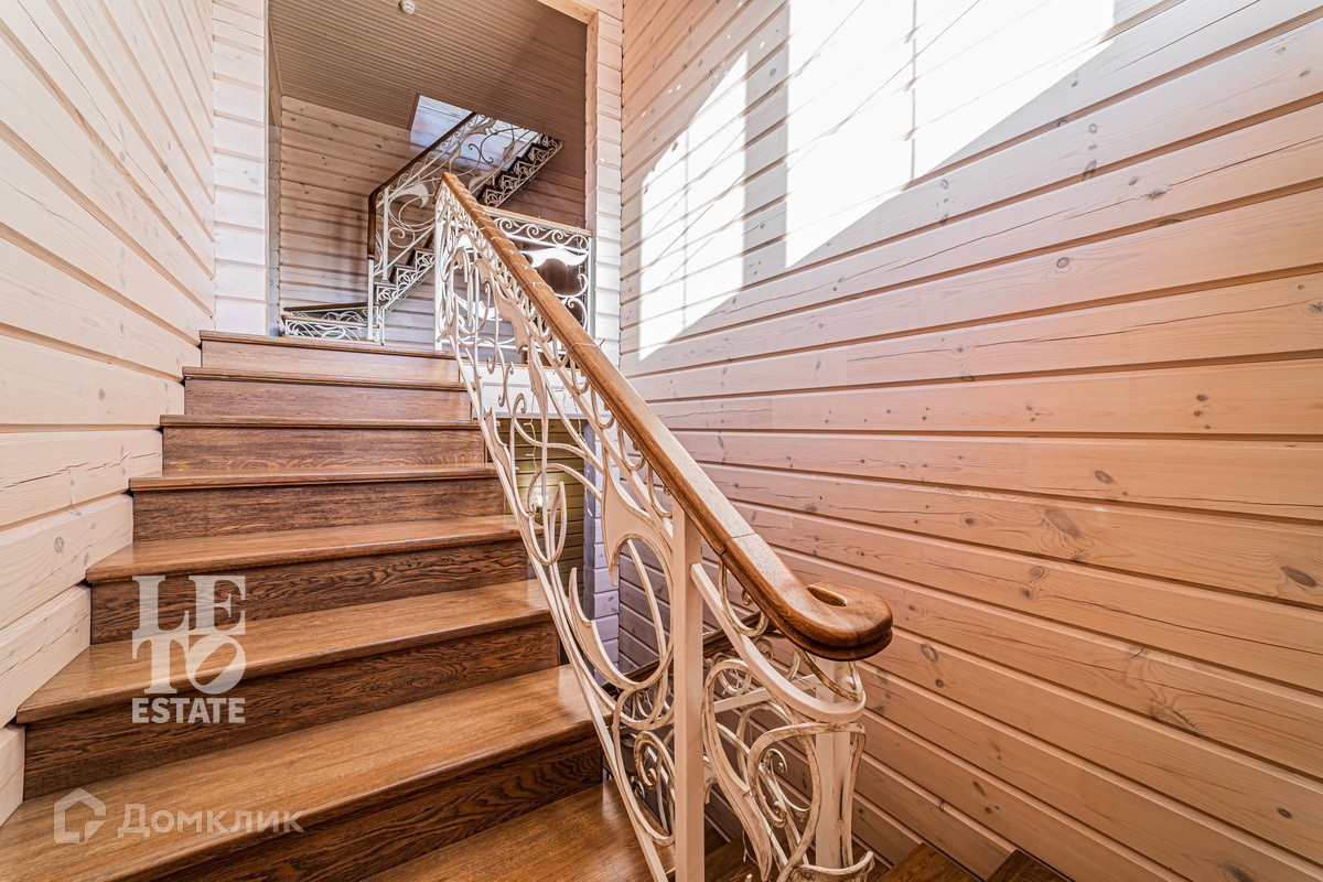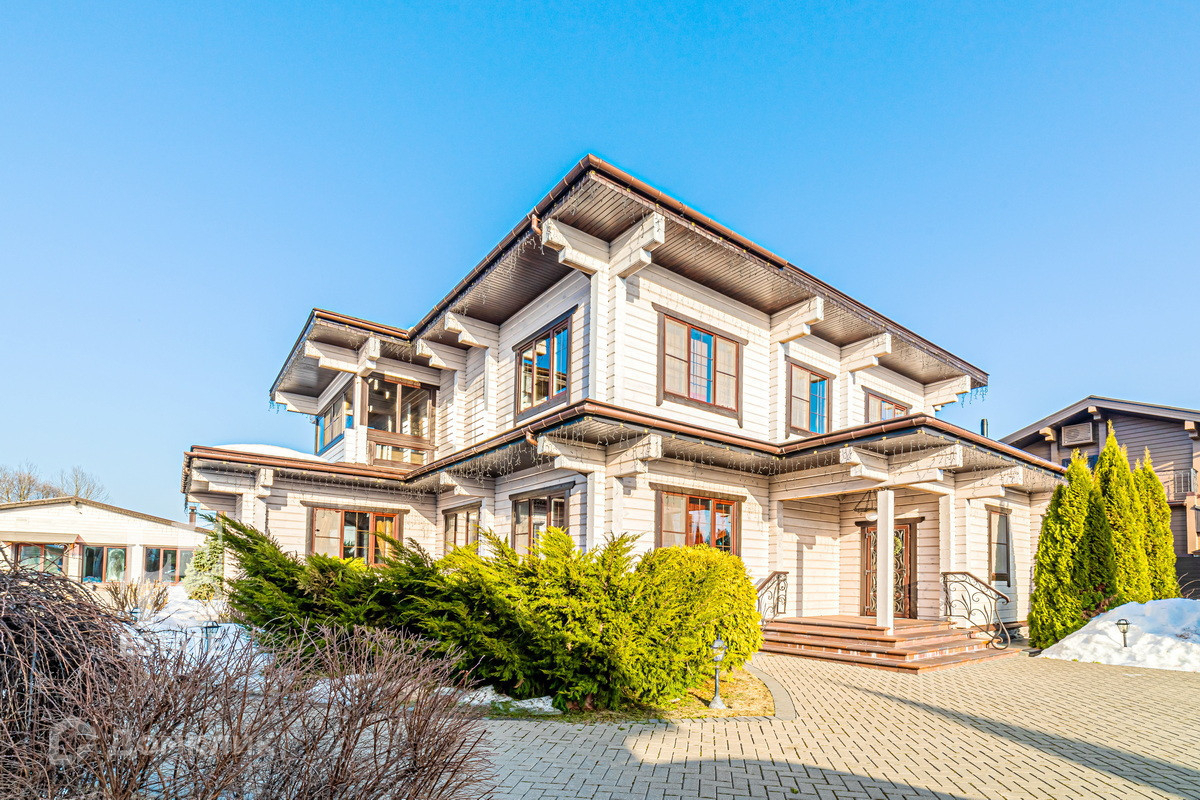 Трехэтажный дом построен в 2017 году из цельного профилированного бруса на монолитном фундаменте. Во внешней отделке были использованы качественные и натуральные материалы: цоколь здания отделан облицовочным камнем, окна обрамлены деревянными рамами, лестницы сделаны из каменной плитки. Дом хорошо утеплен и отлично подходит для круглогодичного постоянного проживания.