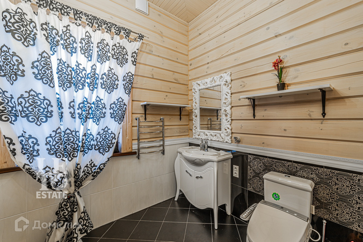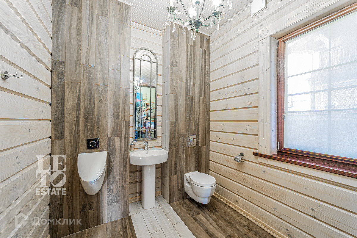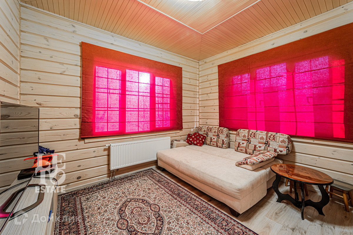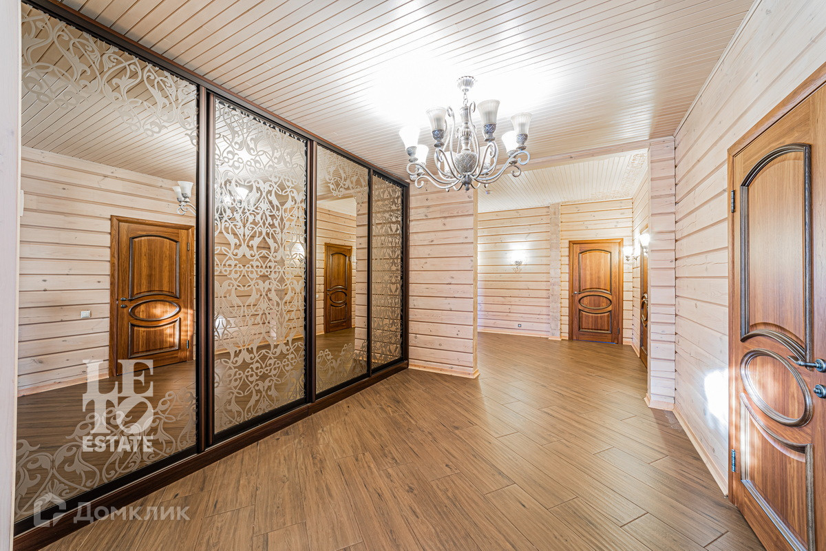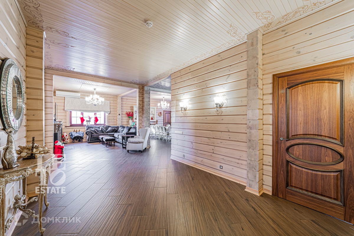Трехэтажный дом построен в 2017 году из цельного профилированного бруса на монолитном фундаменте. Во внешней отделке были использованы качественные и натуральные материалы: цоколь здания отделан облицовочным камнем, окна обрамлены деревянными рамами, лестницы сделаны из каменной плитки. Дом хорошо утеплен и отлично подходит для круглогодичного постоянного проживания.