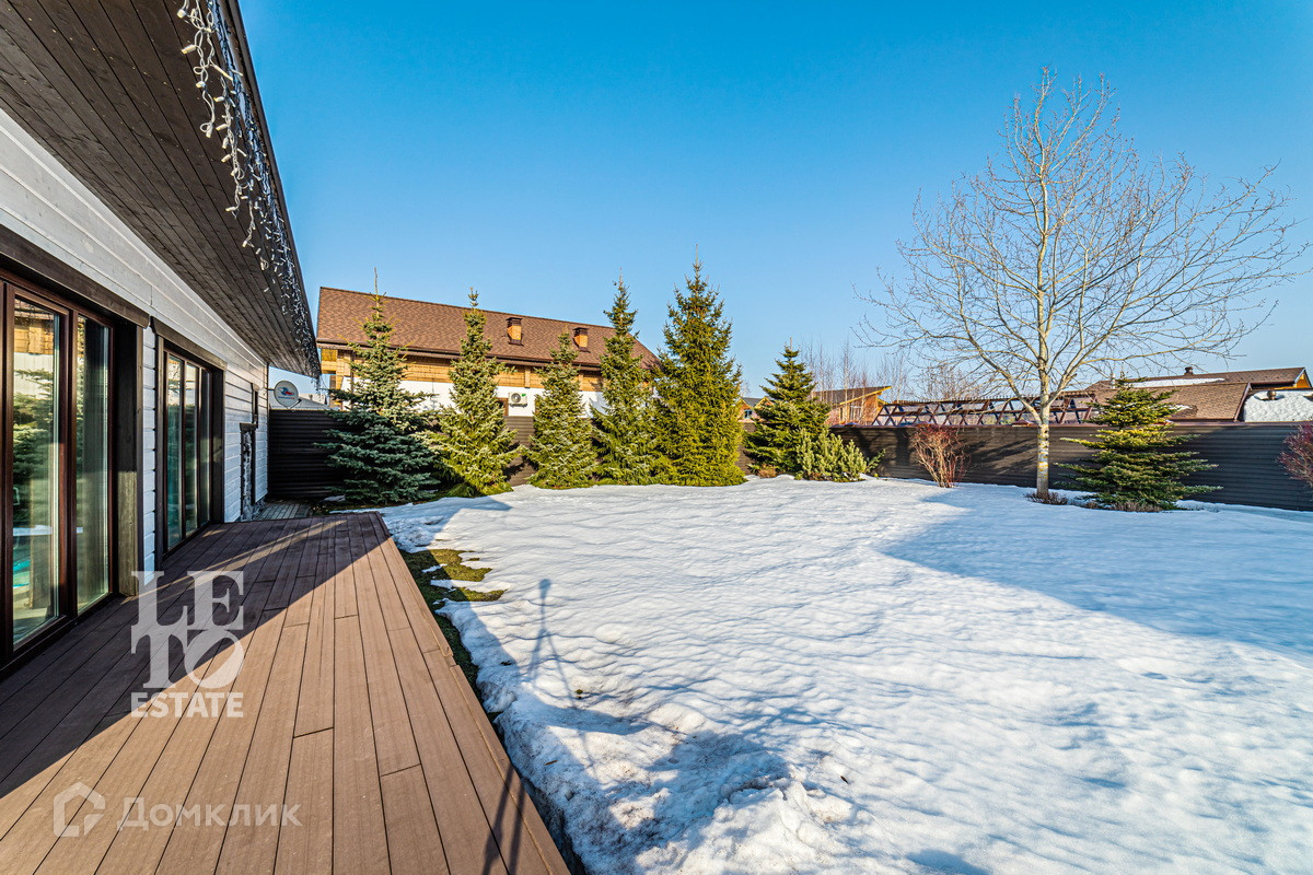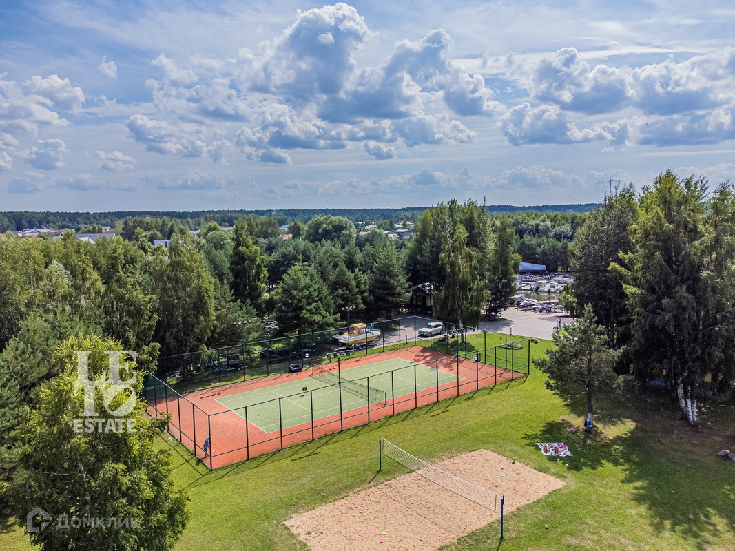 Участок правильной формы полностью огорожен деревянным забором с автоматическими откатными воротами и подсветкой. Перед домом расположена большая площадка для парковки автомобилей. Сделан ландшафтный дизайн: вымощены дорожки тротуарной плиткой, посажены редкие сорта лиственных и плодовых деревьев, установлено освещение с датчиками движения. Дом находится в шаговой доступности от воды и яхт-клуба и имеет отличное место в поселке, располагаясь на тихой улице.