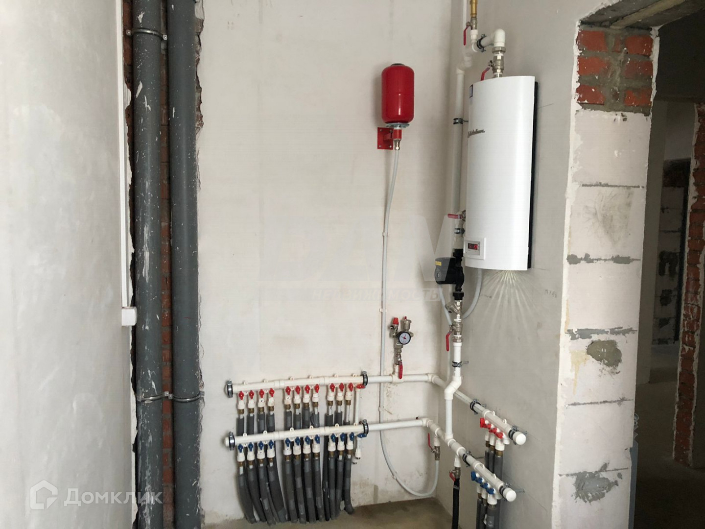 Толщина стен 530 мм, дом очень теплый. Отопление (электро котел, водяной теплый пол + радиаторы) подключено, дом протоплен, можно сразу запускать отделочную бригаду. Электрика разведена по дому, лампочки уже горят. В самые крепкие морозы отопление выходит 10-12 тысяч рублей в месяц.