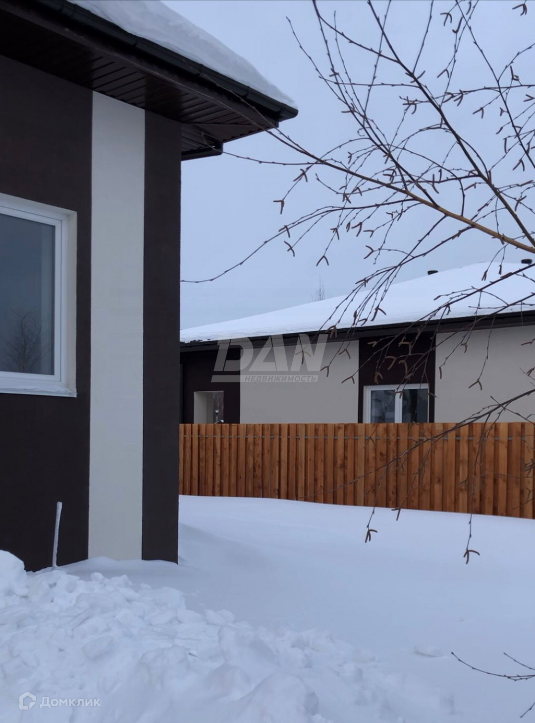 В стоимость входит сам дом с предчистовой отделкой, участок (земли ИЖС) и забор со всех сторон. Забор на внешней стороне состоит из бетонного основания, кирпичных столбов, оштукатуренных в цвет фасада дома, и листов профнастила. Ворота распашные, можно подвести электропривод.