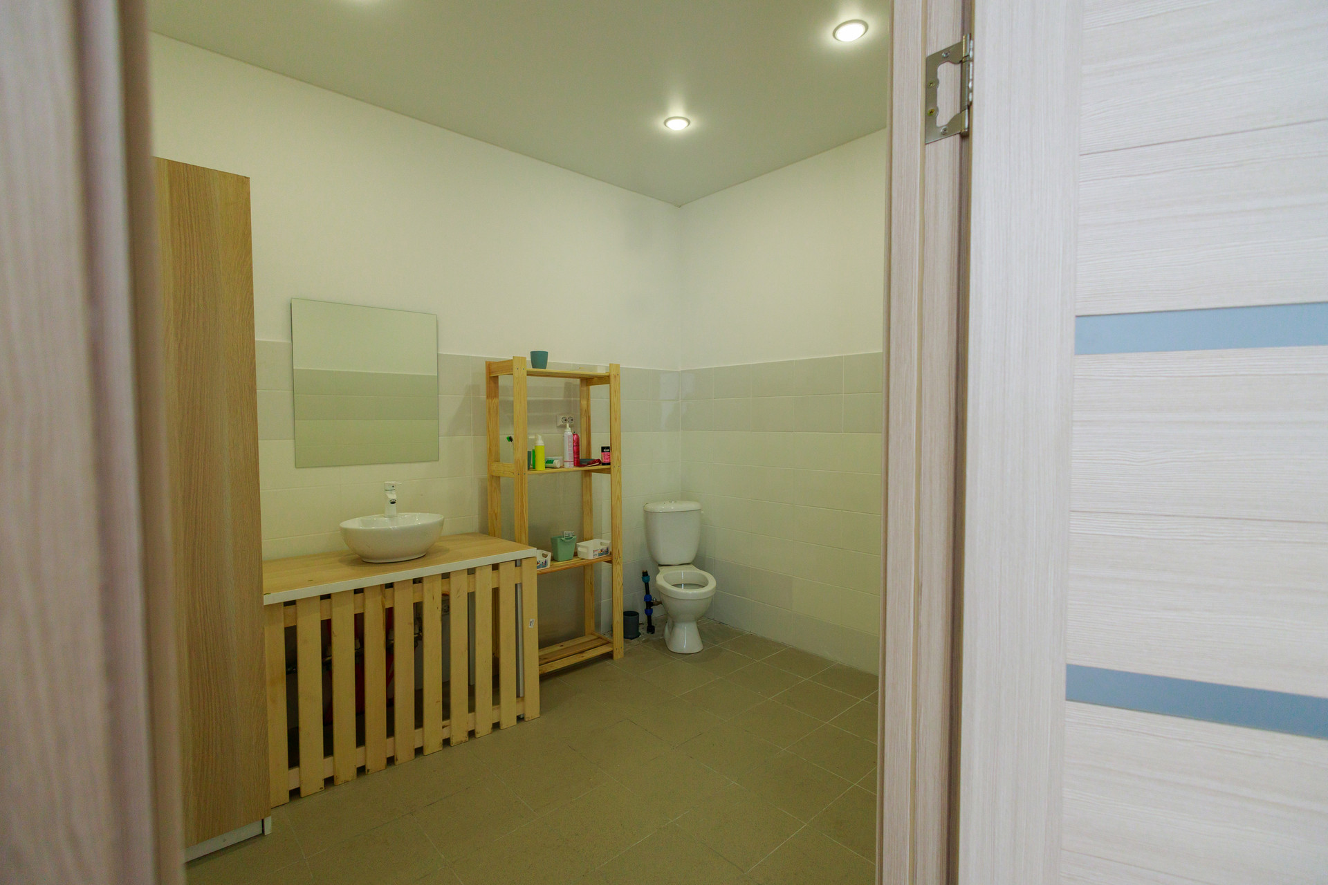 — Сан узел пол и стены в кафеле