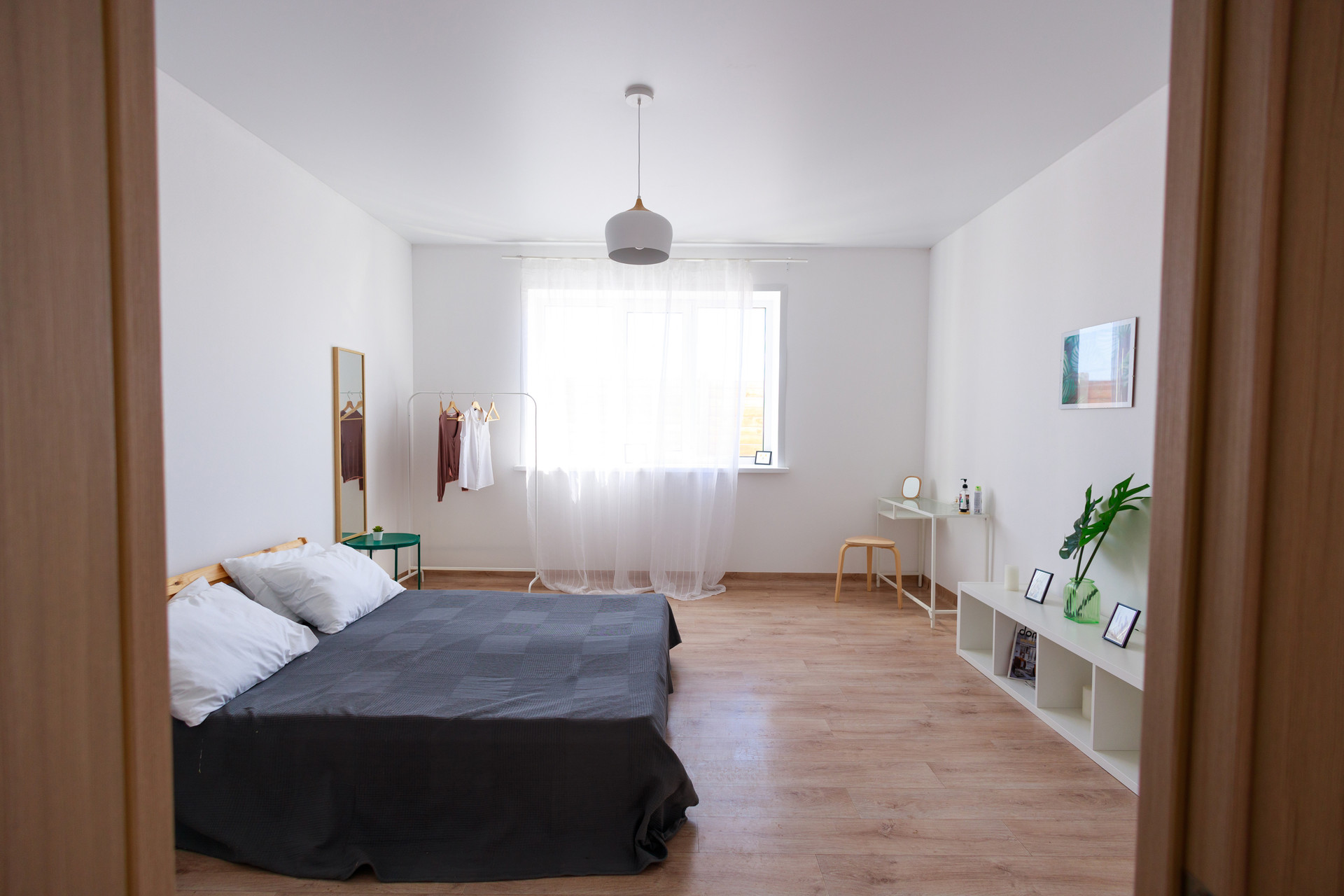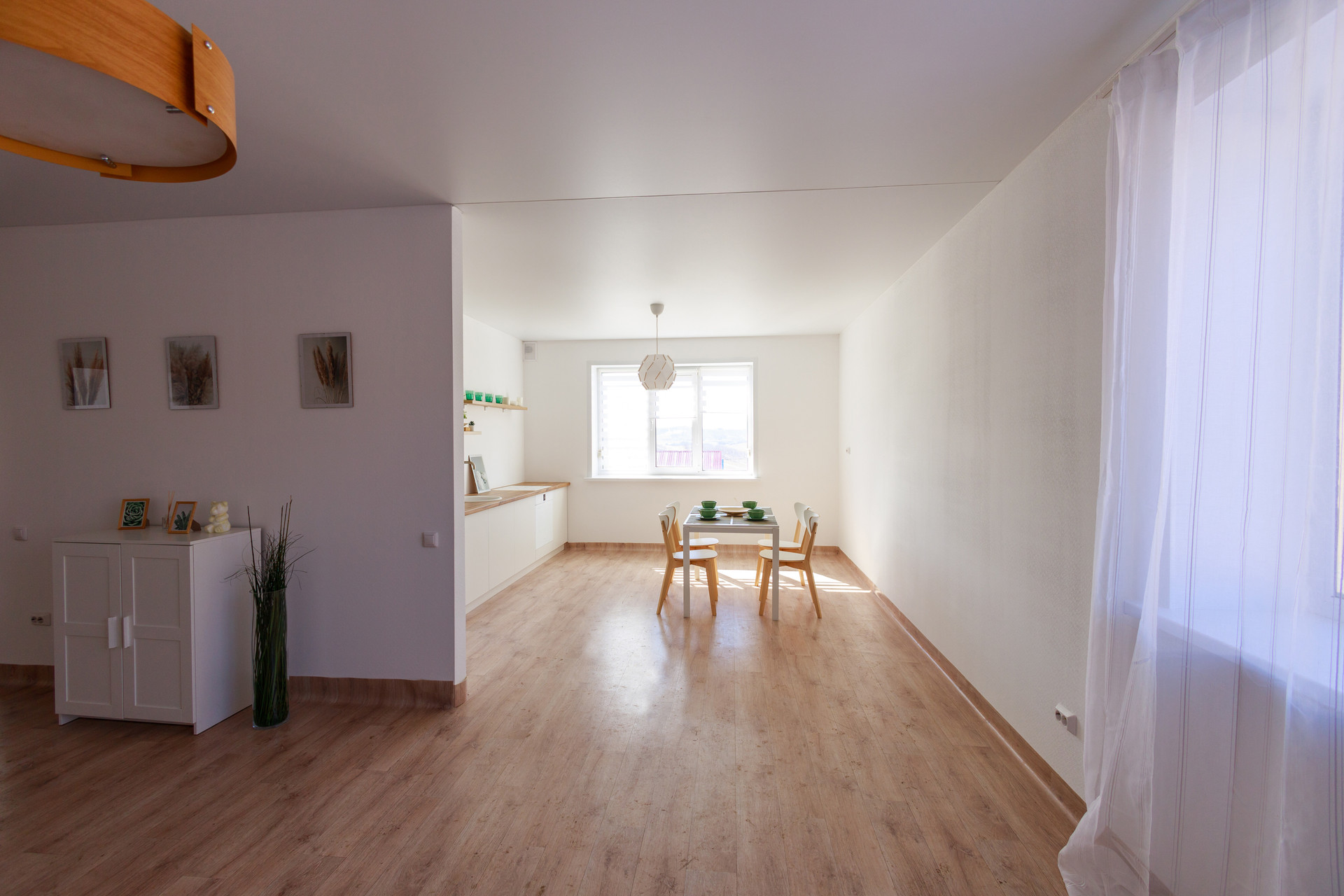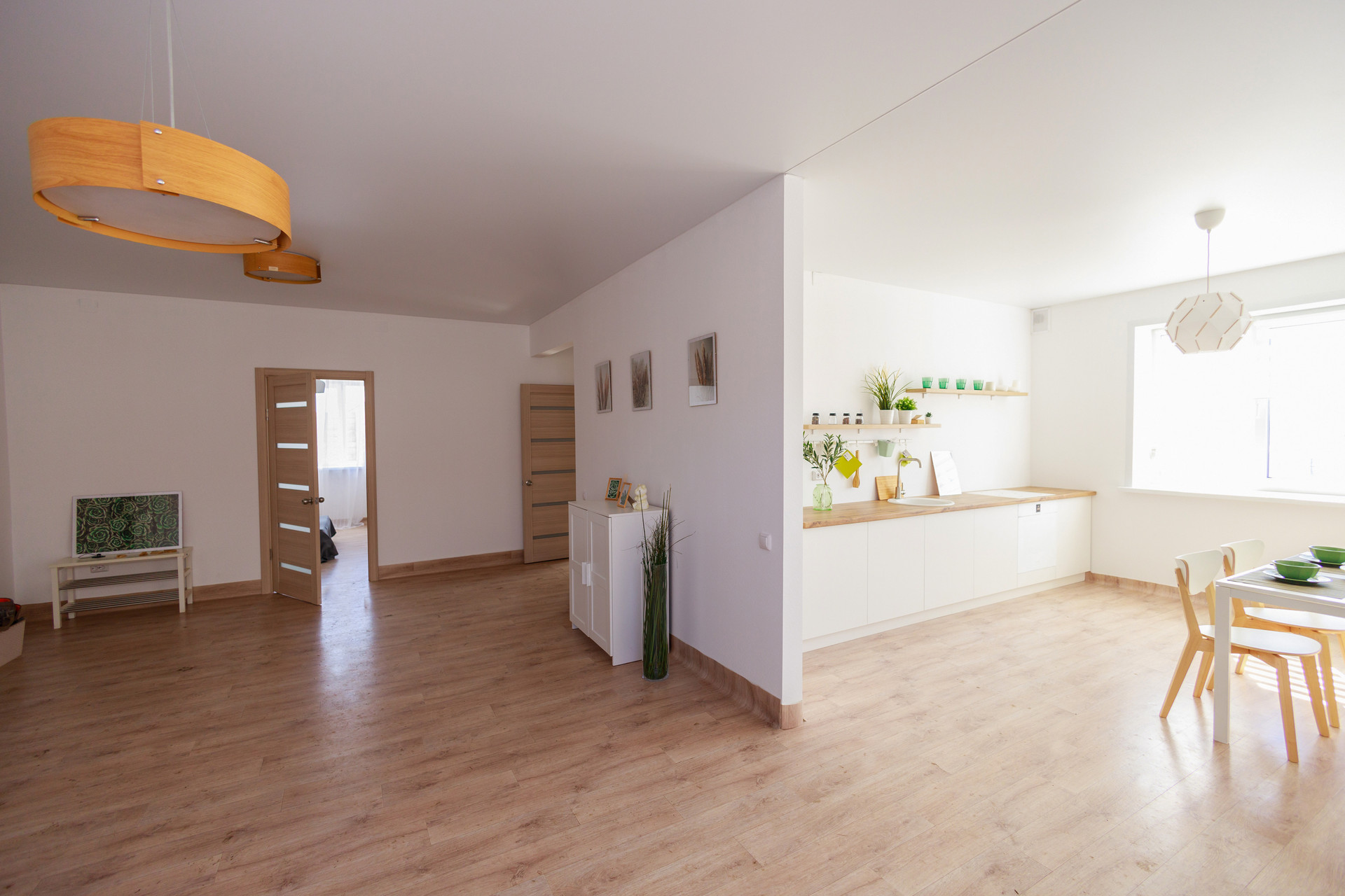 В доме 94 м2 (две cпaльни, куxня с гocтинoй совмещены).