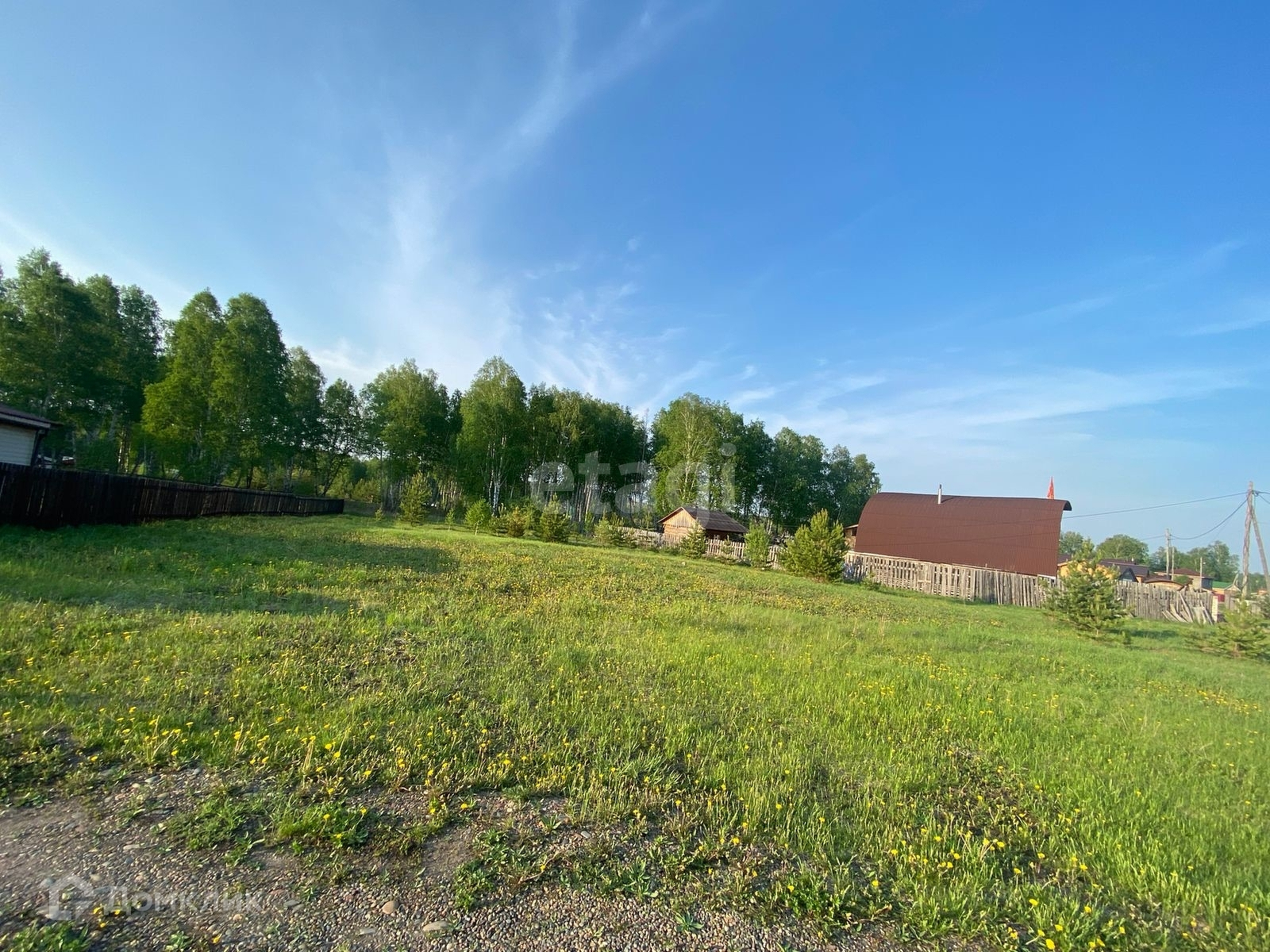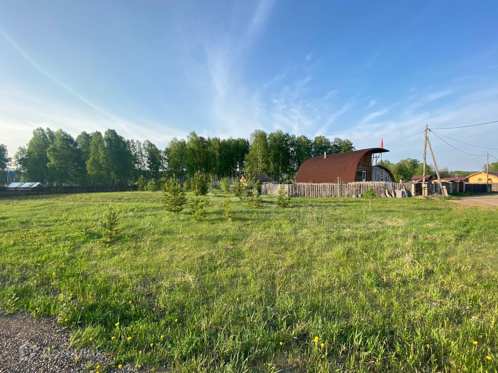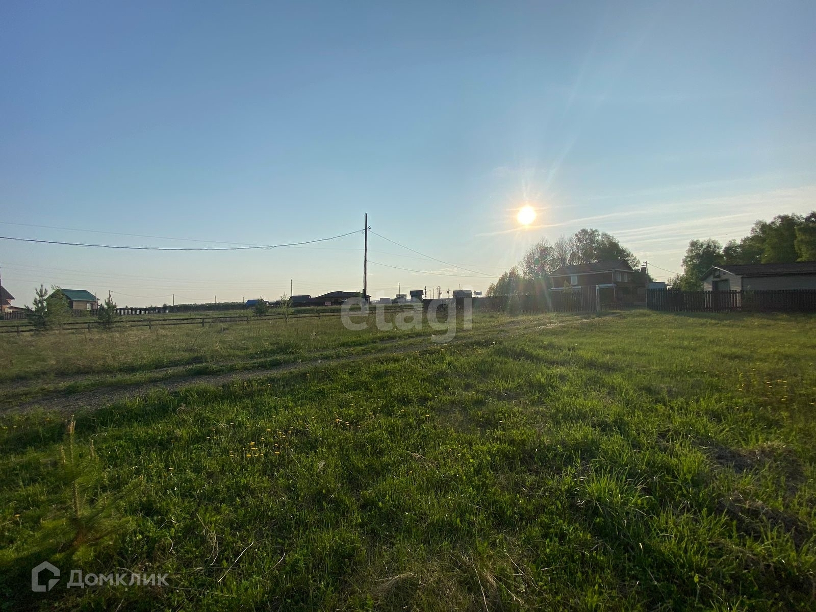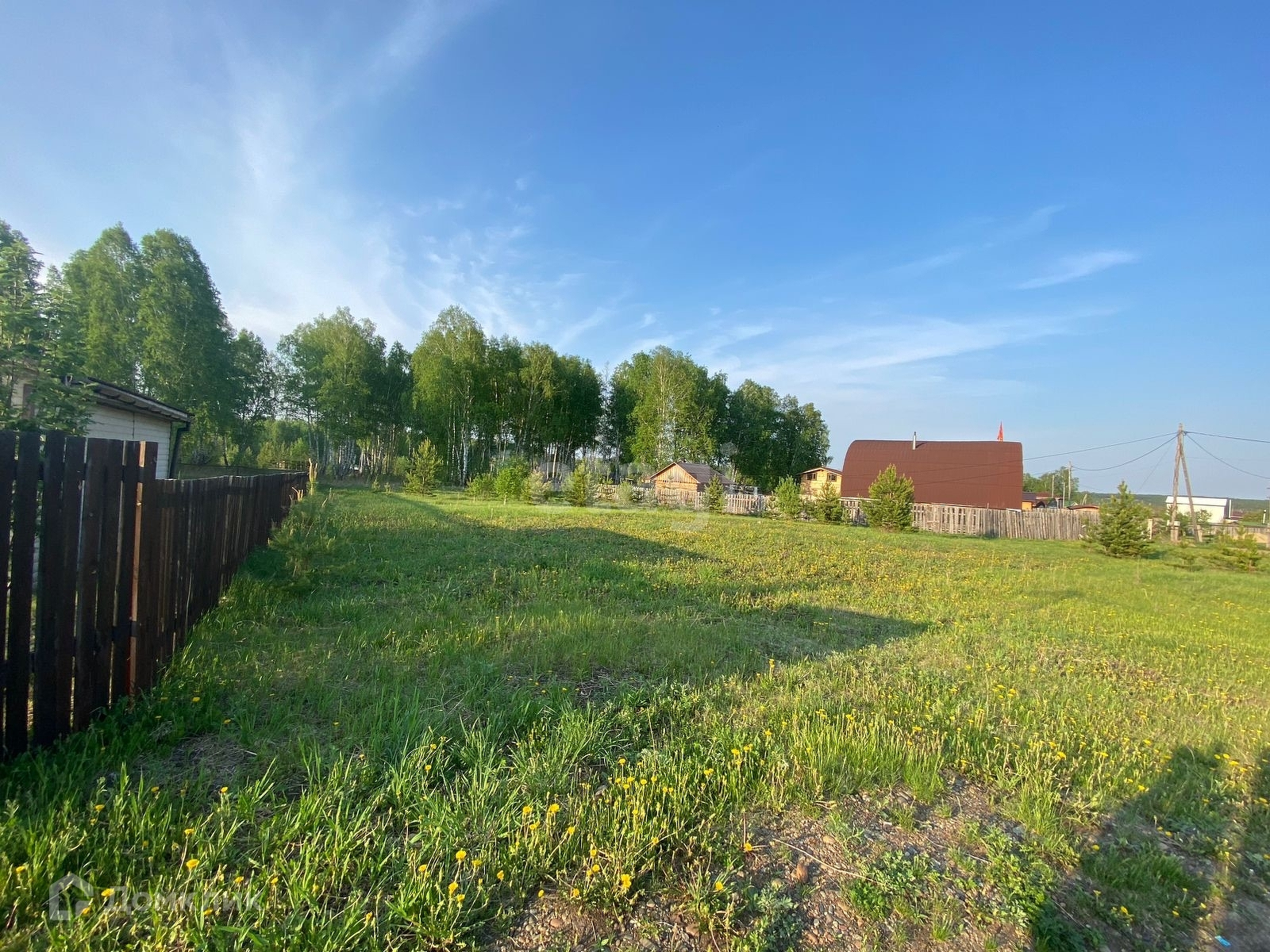Участок ровный, электрические столбы рядом с участком.