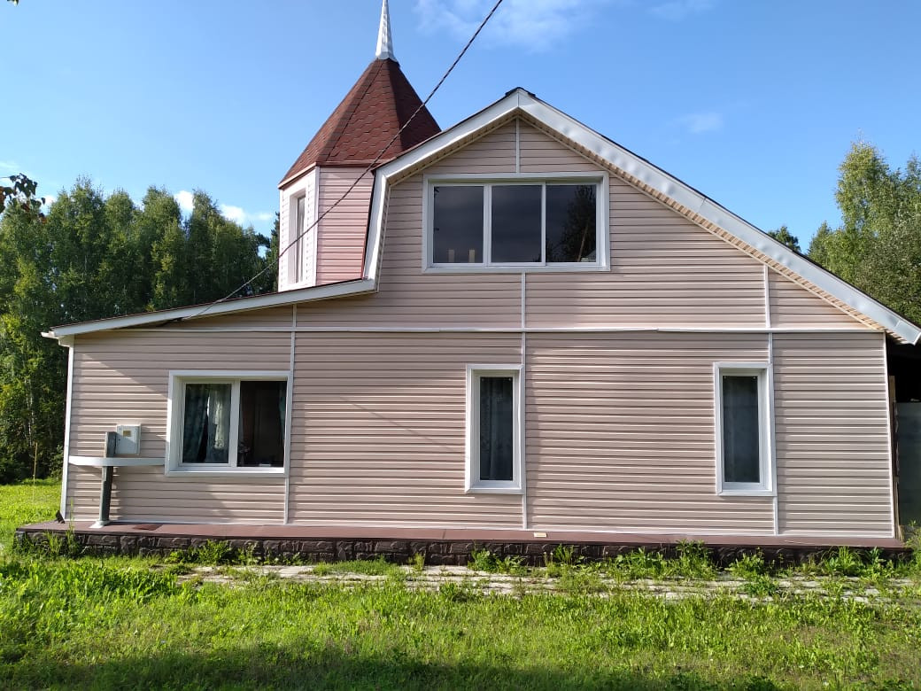 из бруса 180х180 мм под сайдингом цвета «персик» размером 12х7 м с балконом,