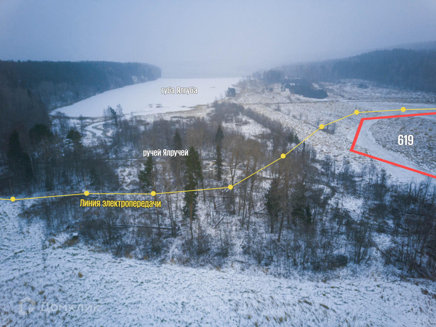 Вдоль участков проходит линия электропередачи.