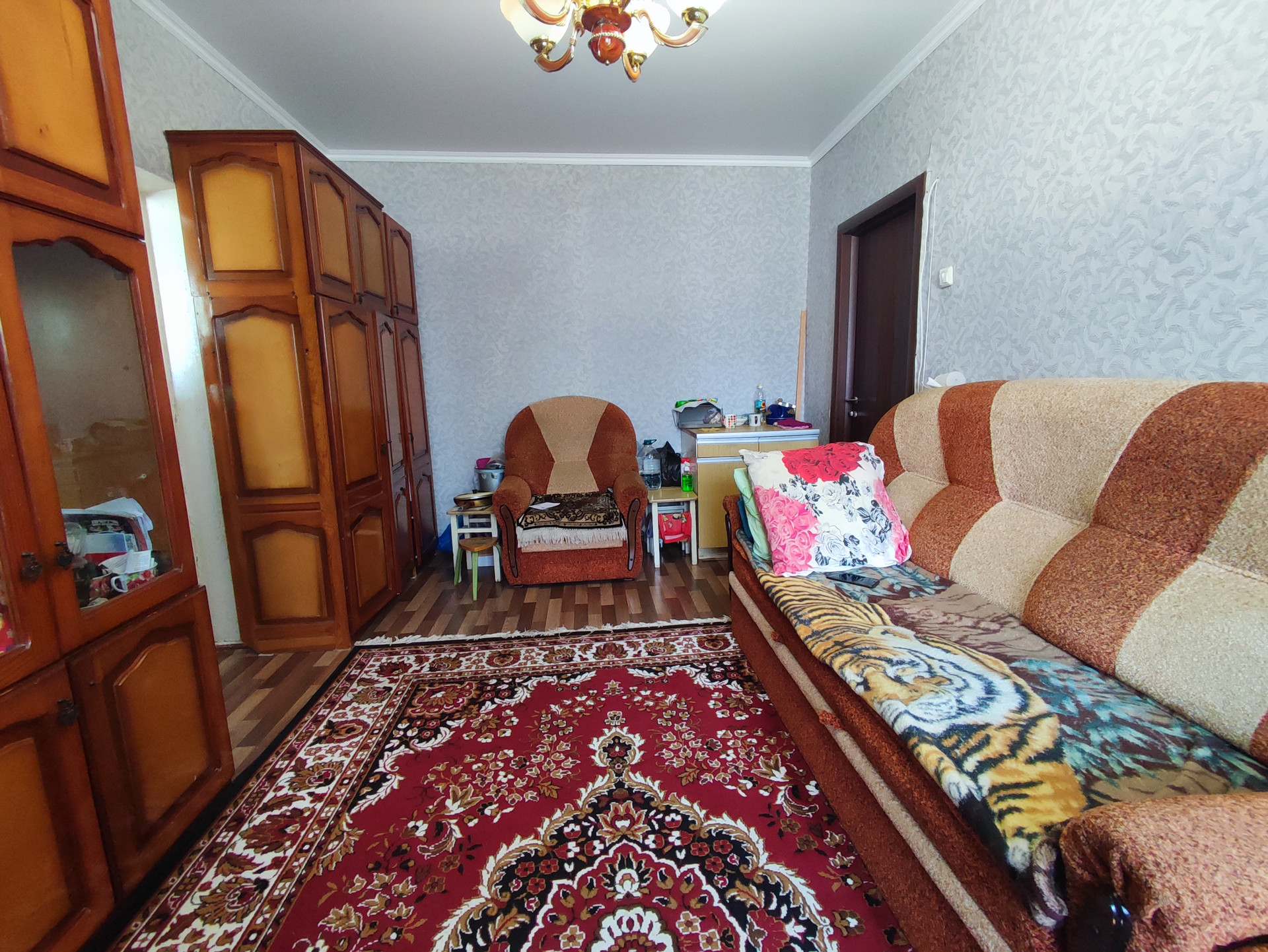 В комнатах хороший ремонт: 2 пластокна, натяжные потолки, на полу линолеум, новая входная металлическая дверь. Высота потолков 2,71м.