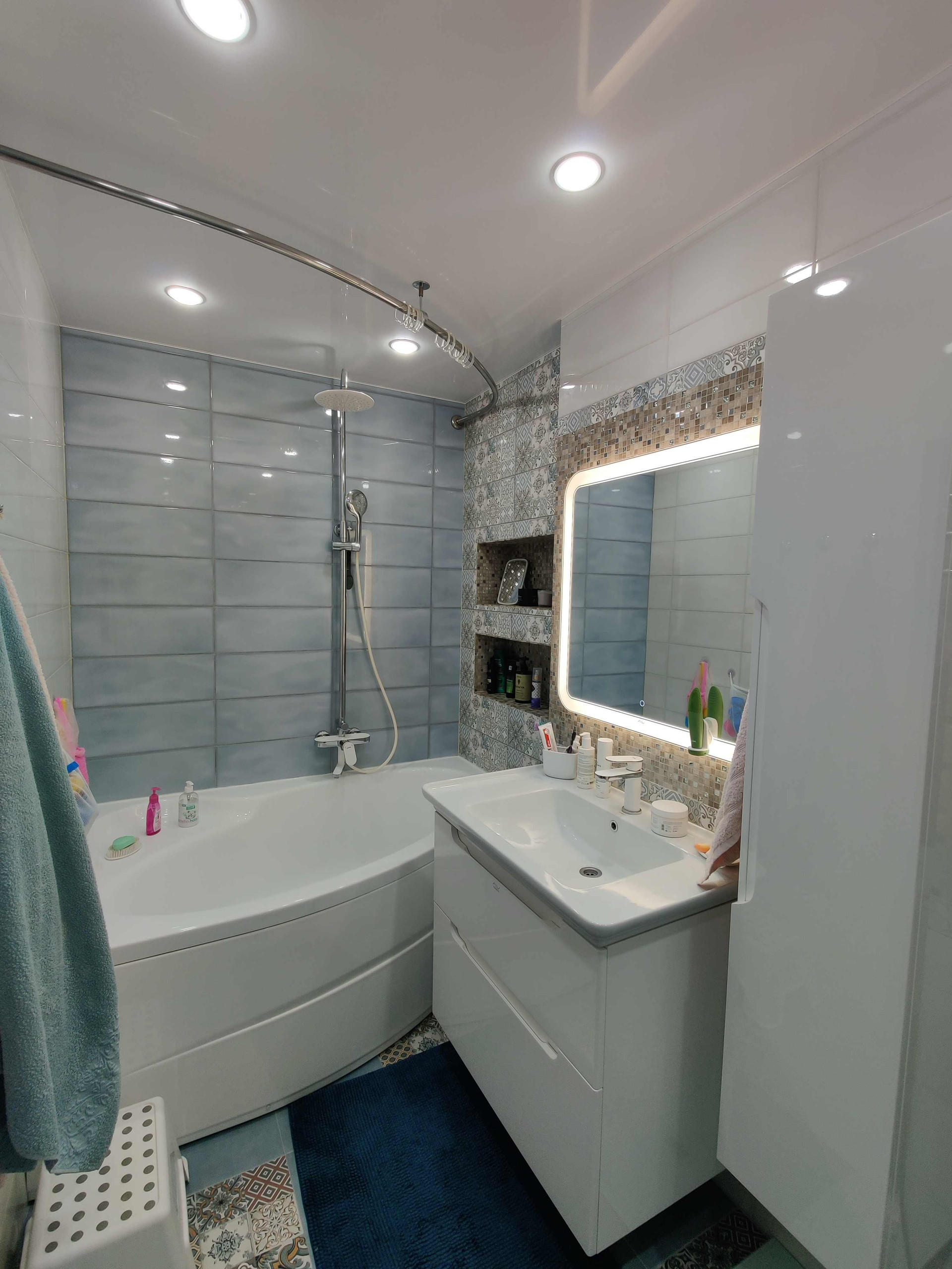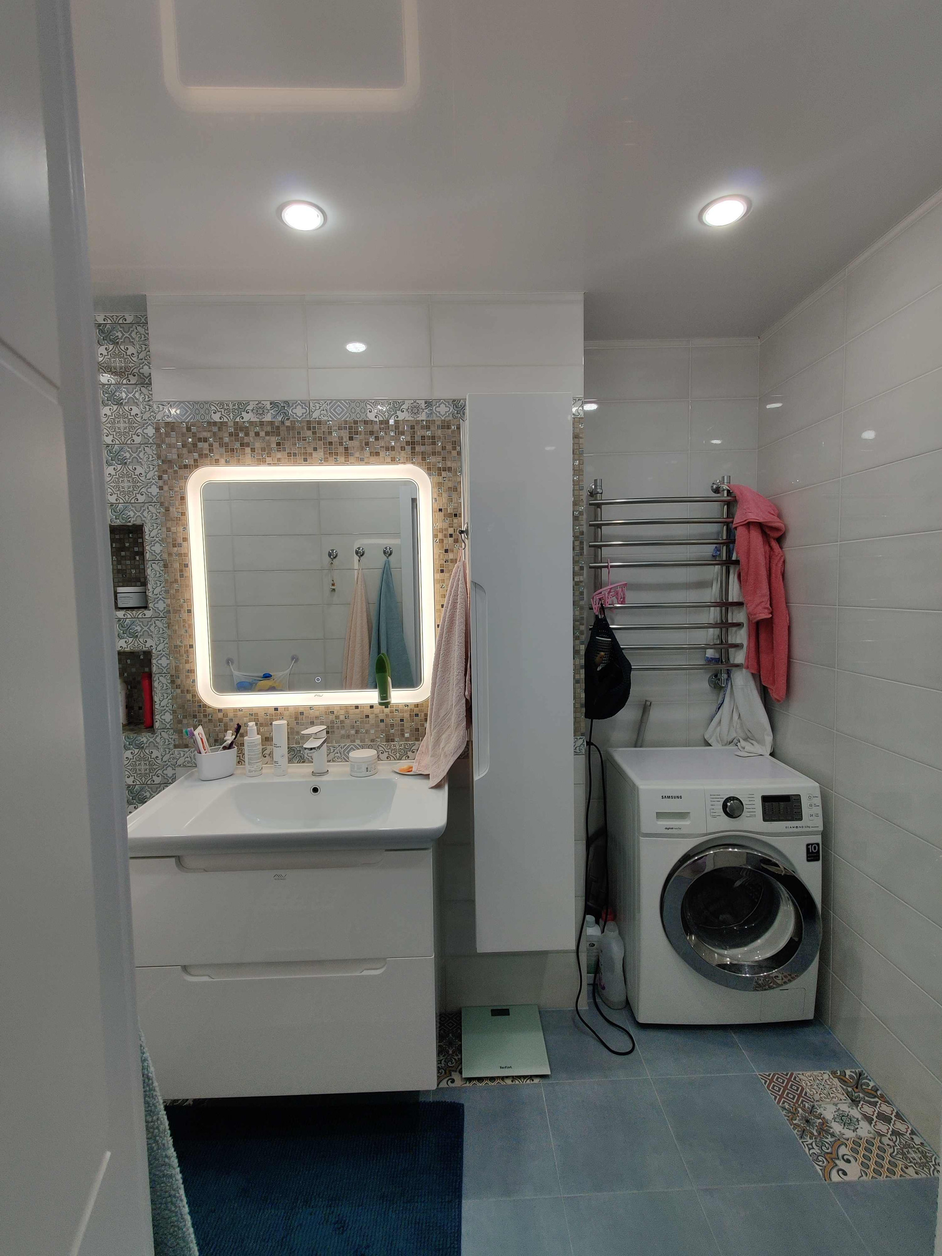 раздельный сан. узел отделан итальянским кафелем с использованием мозаики.