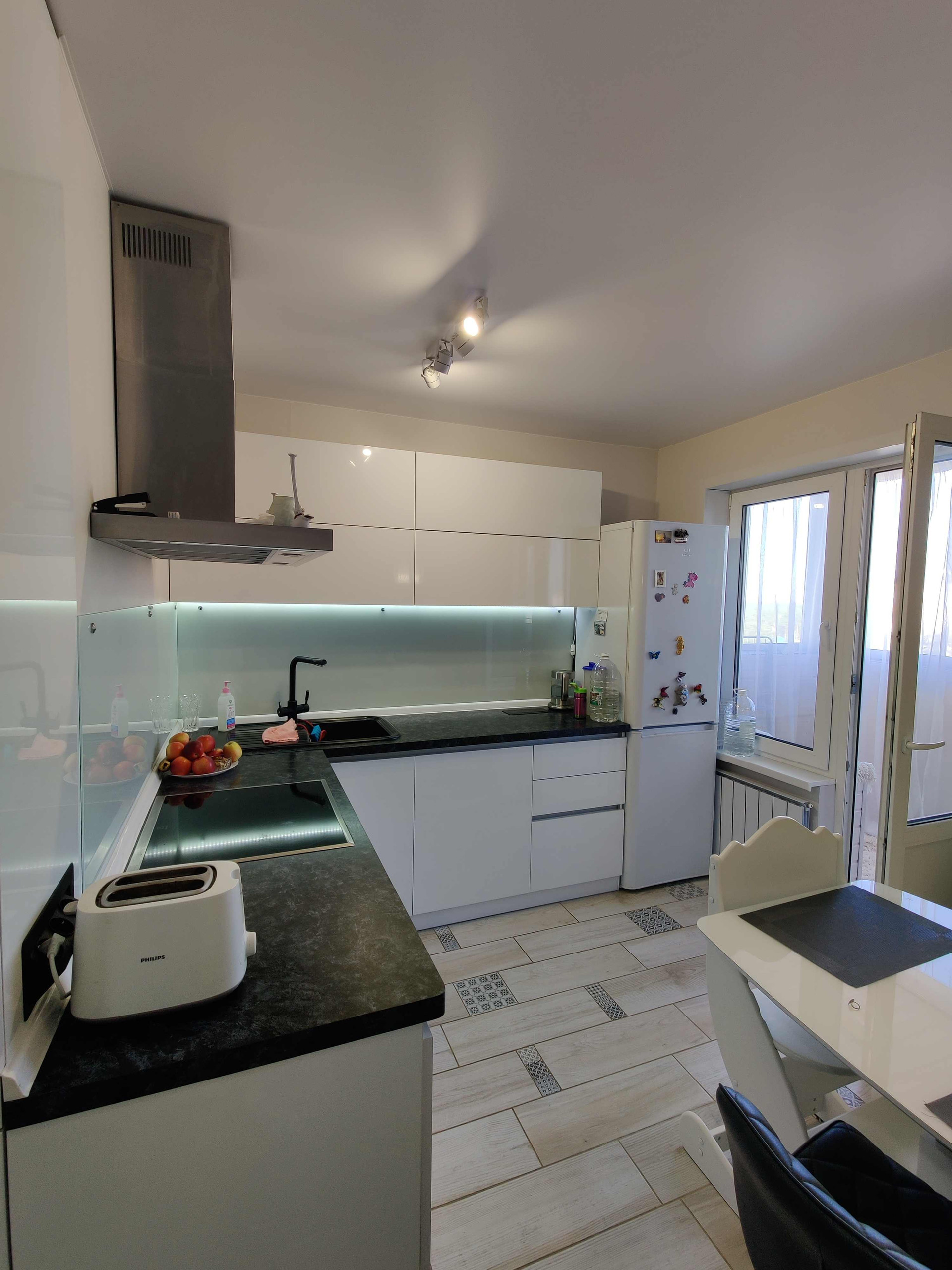 функциональная и продуманная до мелочей кухня с дорогой и современной мебелью и техникой, площадью 10 кв.м.