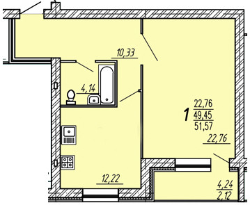 Жилая площадь 22.76 м2
