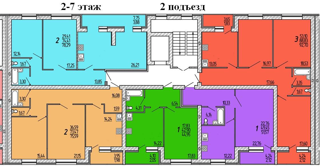 Общая площадь 49.45 м2