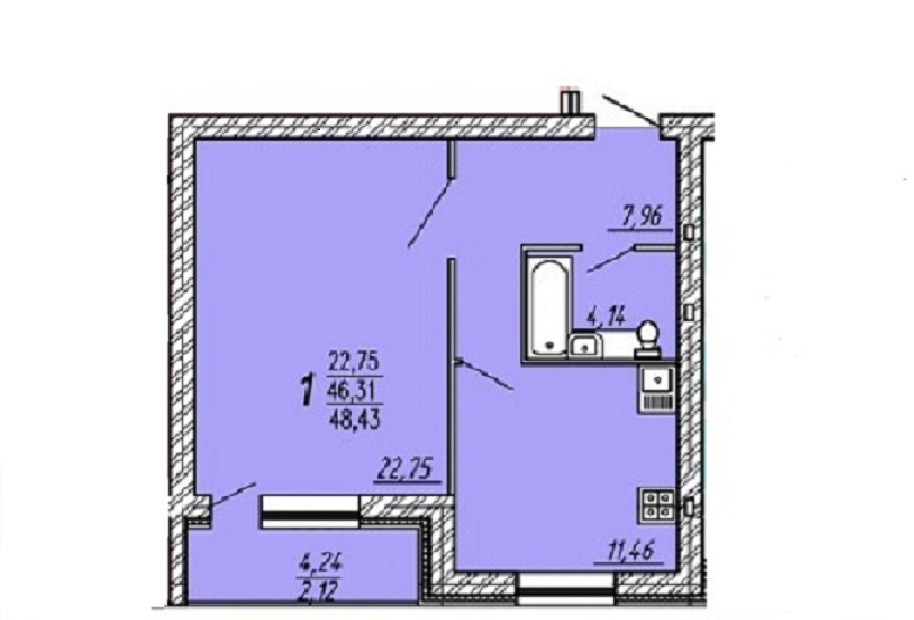 Балкон, лоджия 1 балкон