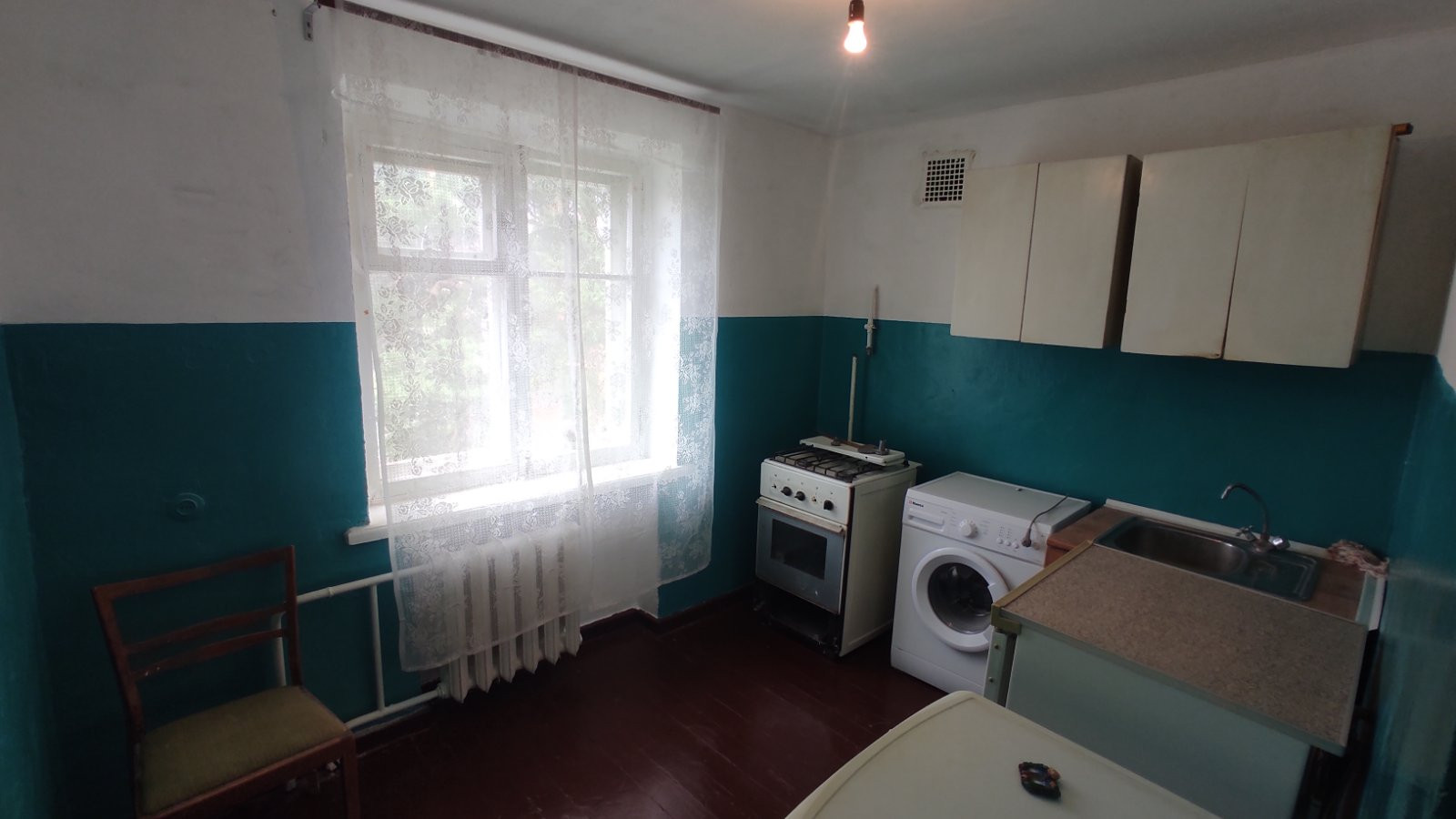 Просторная кухня 9 кв.м., санузел раздельный в обычном состоянии.