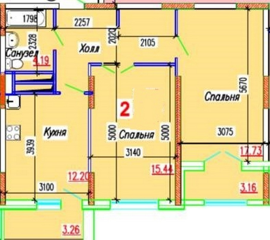 Количество комнат 2