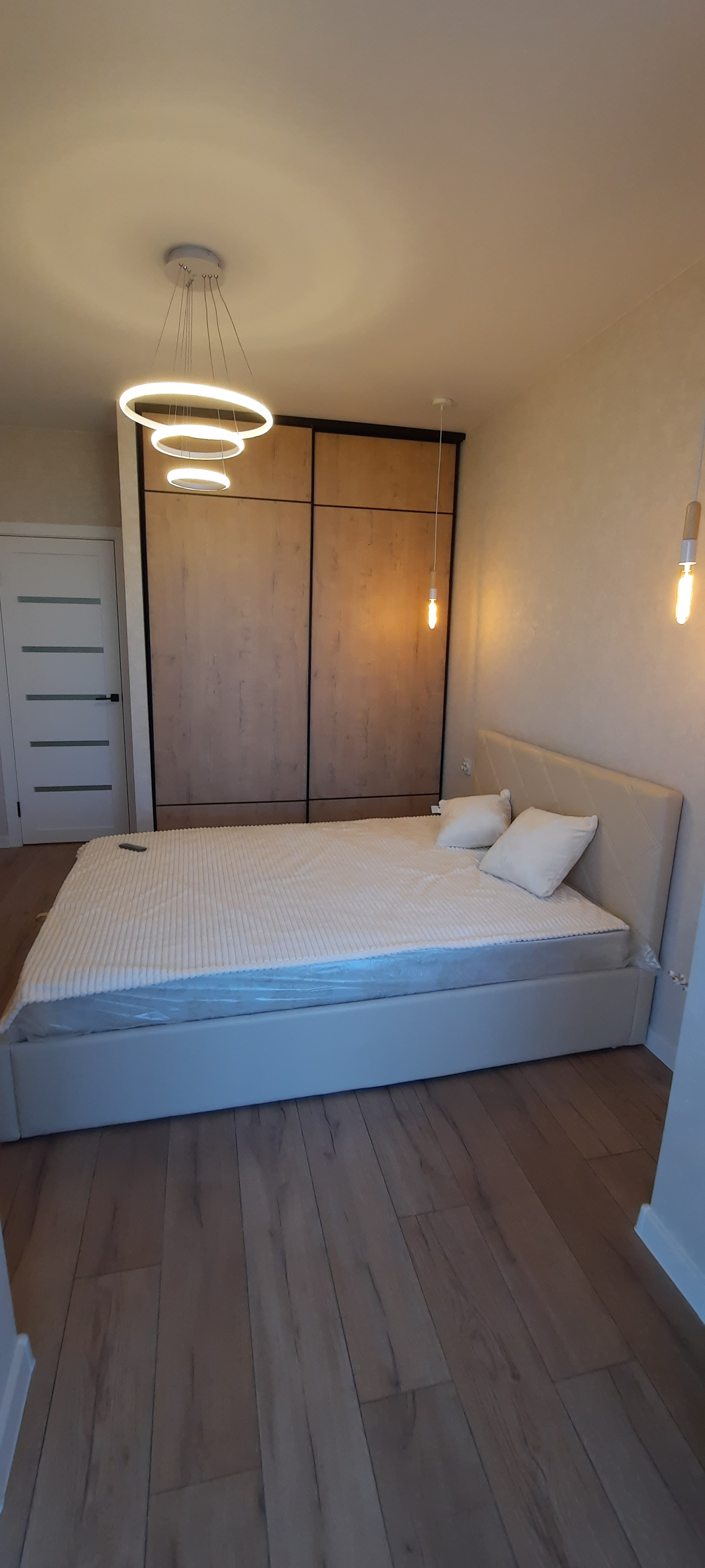 Спальня укомплектована всем необходимым: кровать с подъемным механизмом и ортопедическим основанием, большой шкаф купе, телевизор.