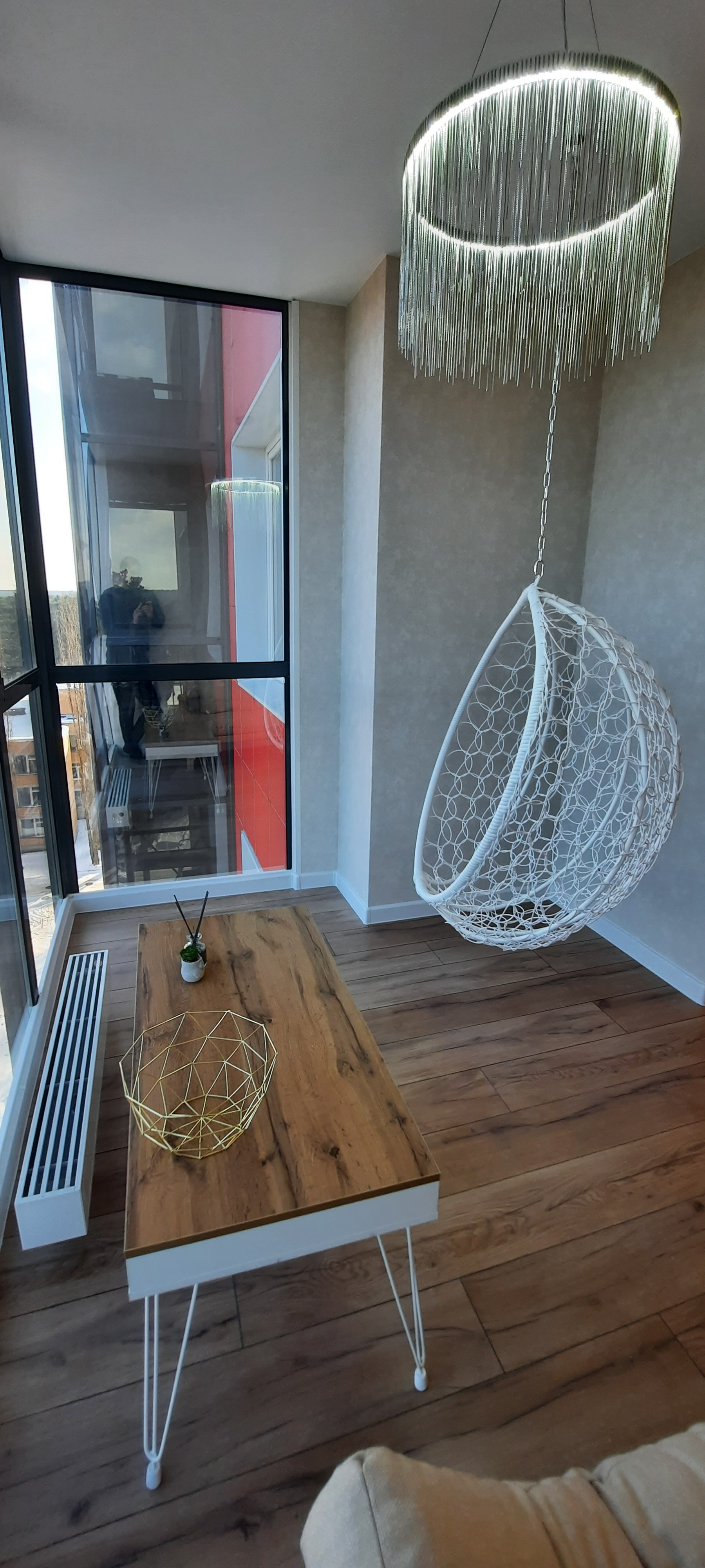 Светлая мастер-спальня (11 м) изолирована от кухни-гостинной (19 м.) и примыкает к лаунж зоне (6 м) на утепленной лоджии (установлены напольный калорифер и теплый пол), стены и потолок утеплены блоками из минеральной ваты, при желании эту зону можно переоборудовать под кабинет.