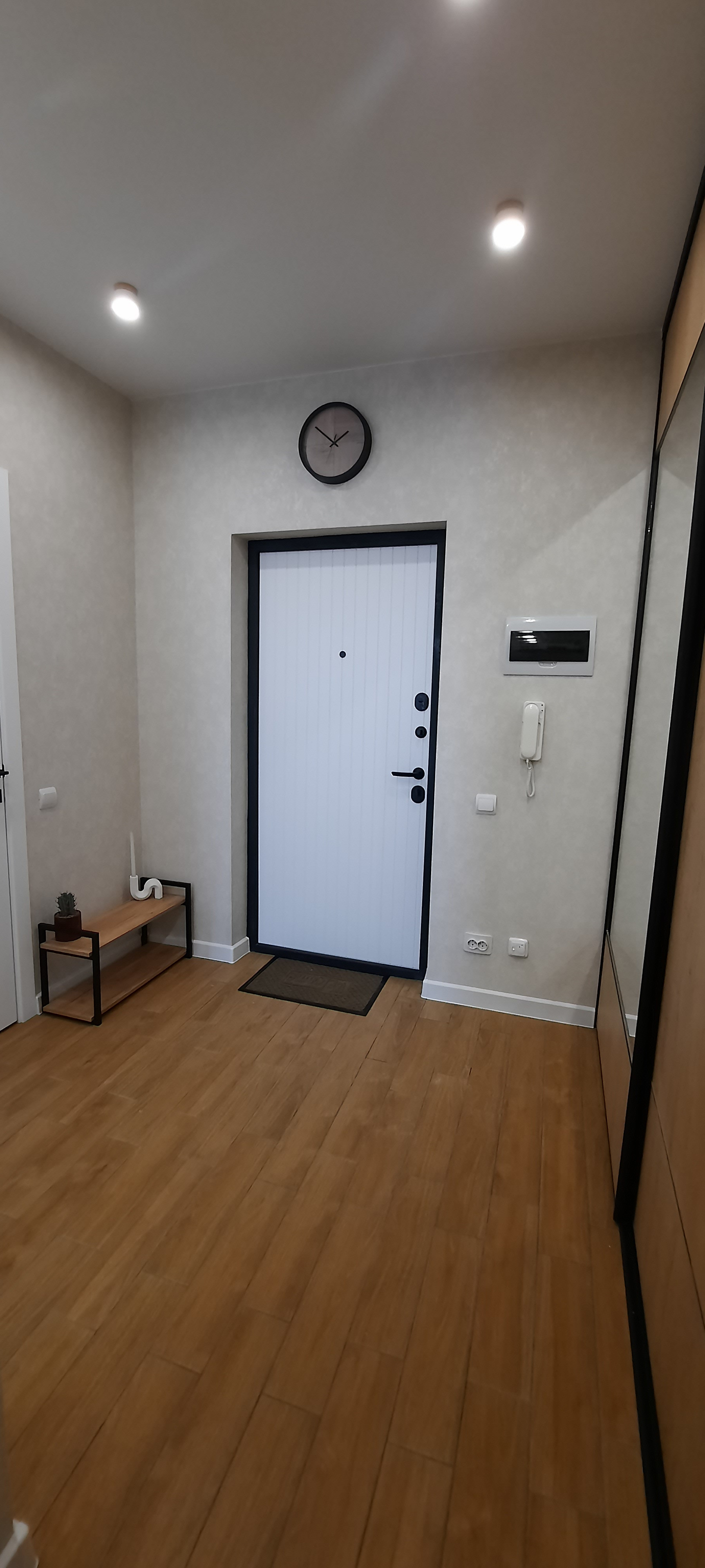 Входная дверь от застройщика заменена на новую, более качественную, с улучшенными характеристиками по шумо и теплоизоляции, с замками 3 степени защиты. Благодаря эргономичной планировке предусмотрено много зон хранения вещей, в коридоре встроен вместительный шкаф купе, который по своим размерам практически не уступает гардеробной комнате.