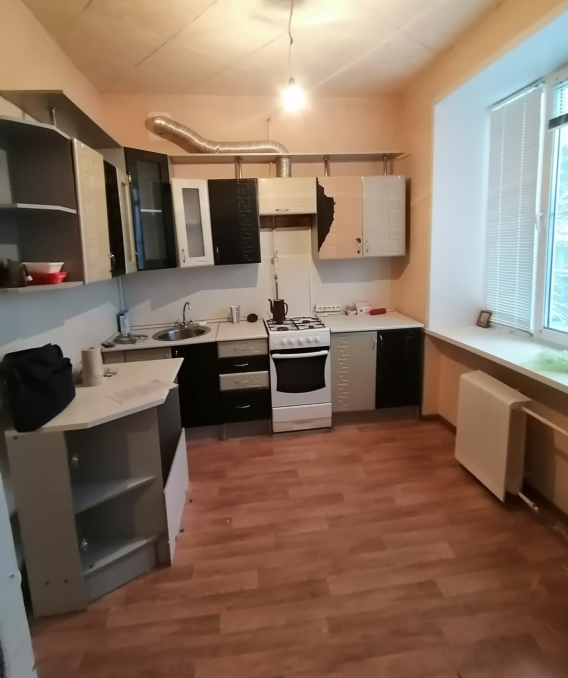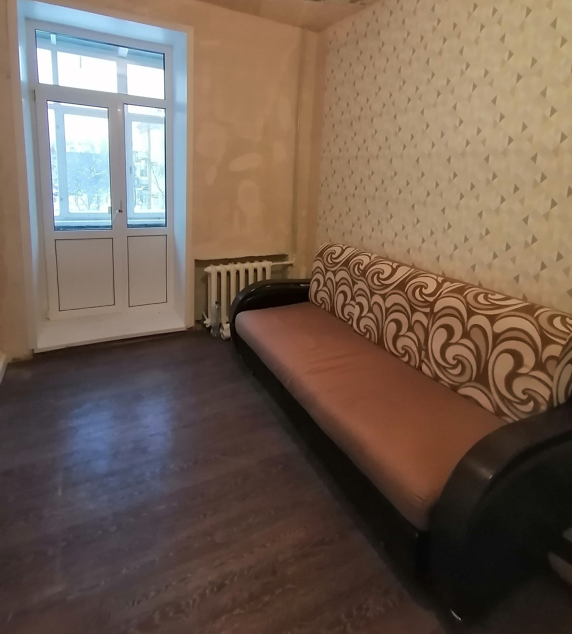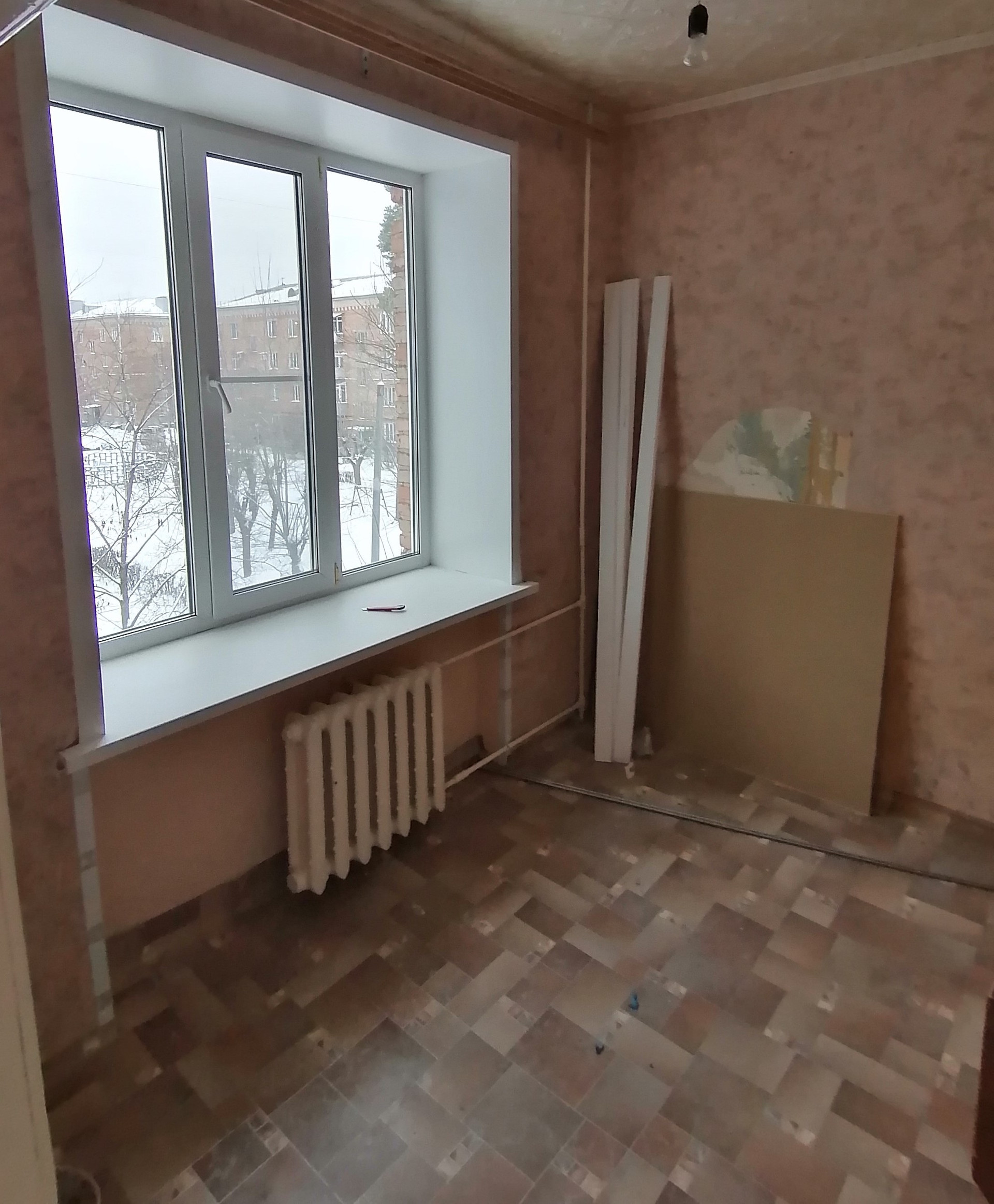 В квартире сделан частично косметический ремонт: пластиковые окна, ровные стены, на полу линолеум.