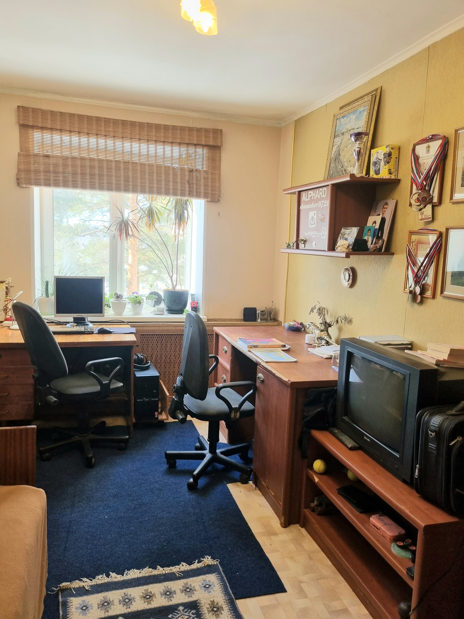 Всеми любимая планировка "распашонка "(комнаты на разные стороны), в квартире всегда умеренно солнечно.