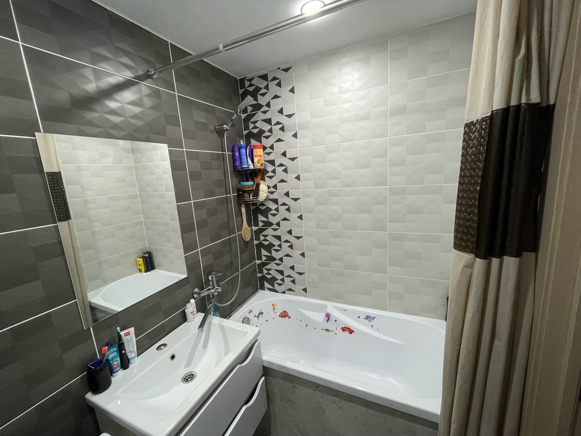 Совмещенный санузел-3,1 кв. м. В современном кафеле с полноценной ванной.