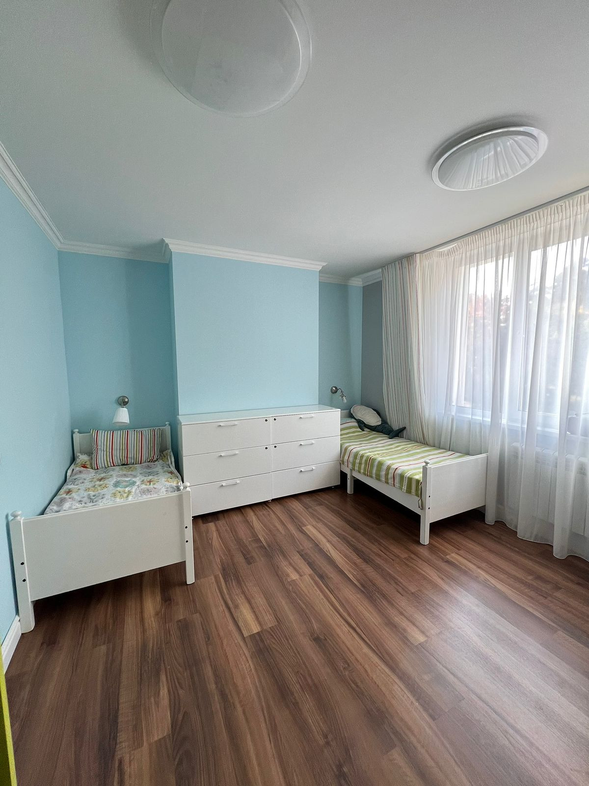 - Готовая спальная комната для ребенка или двух детей - есть большой встроенный стол, шкаф для хранения вещей и книг.