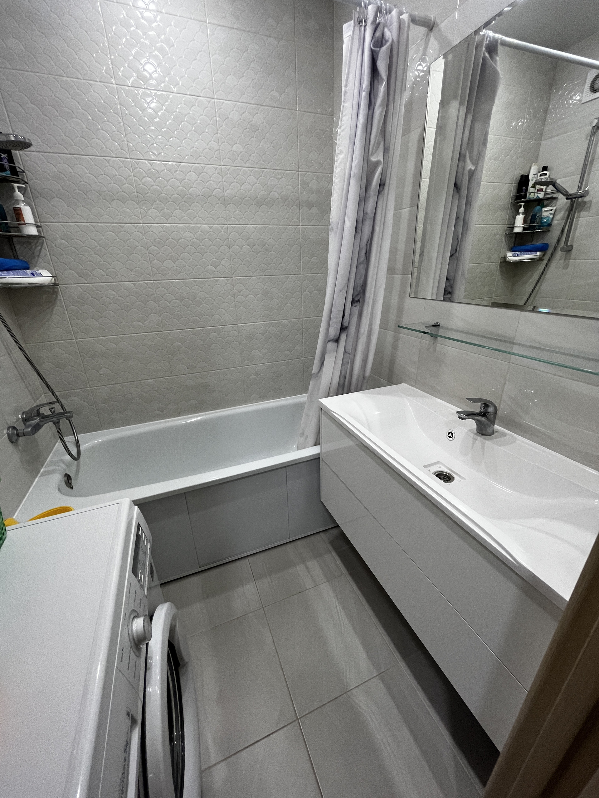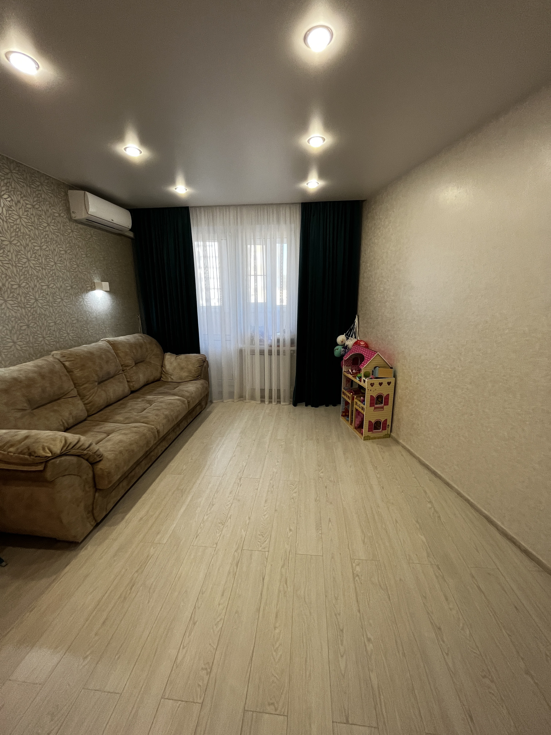 - Кондиционер в комнате, раздельный санузел с современной плиткой