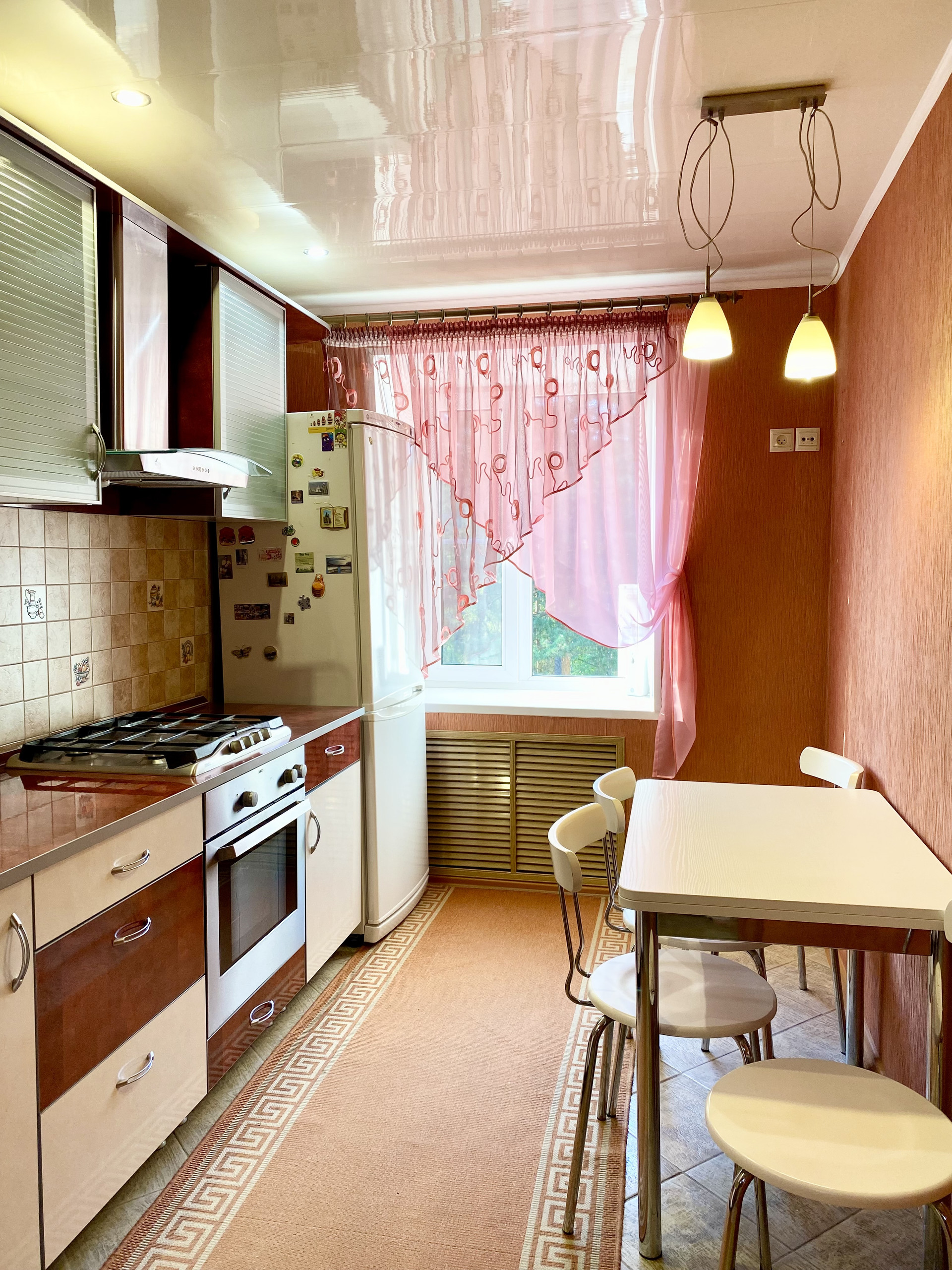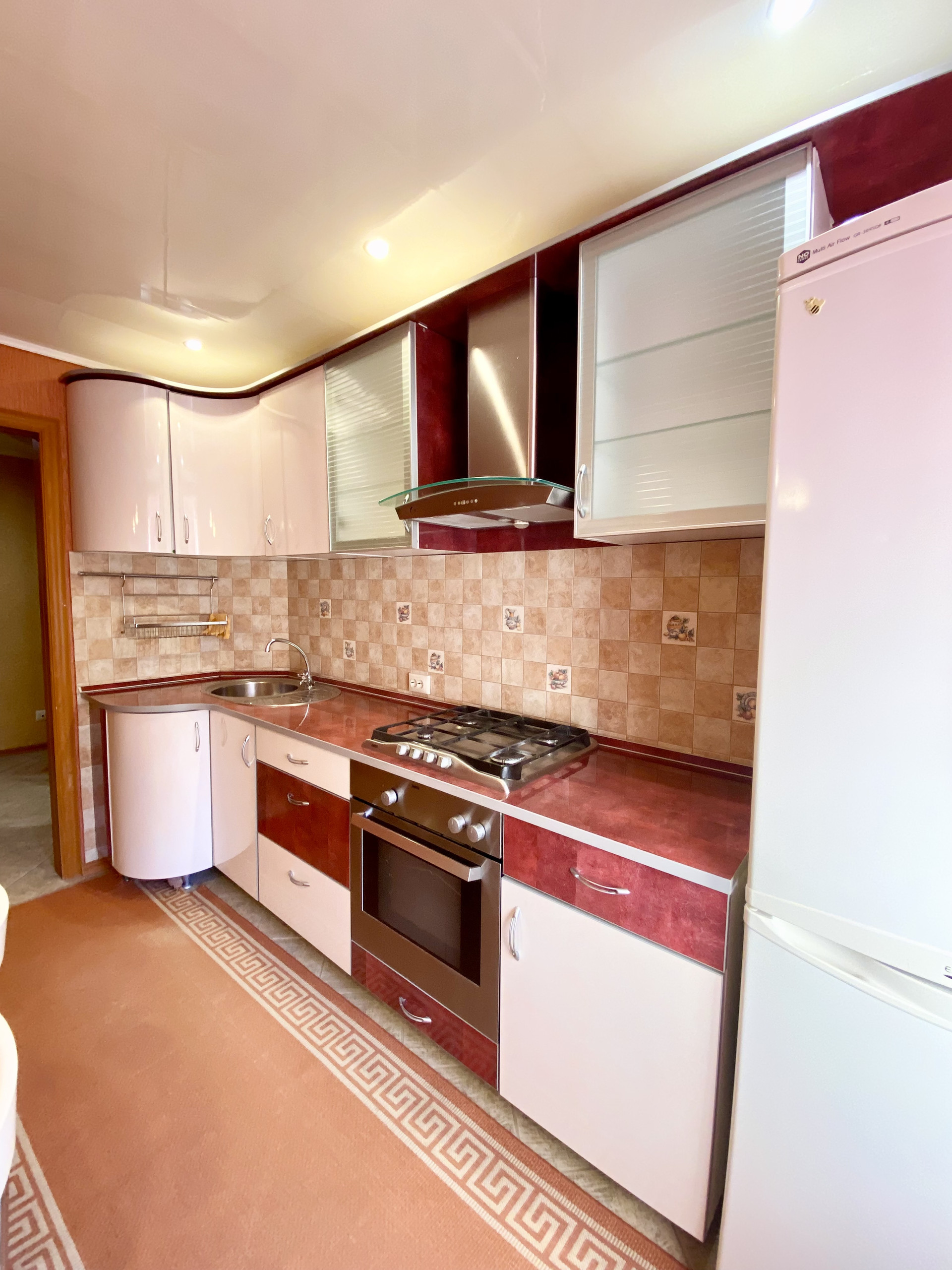 • Кухня: Просторная кухня с качественным ремонтом, оснащенная встроенной мебелью и бытовой техникой, включая холодильник. Есть удобная обеденная зона.