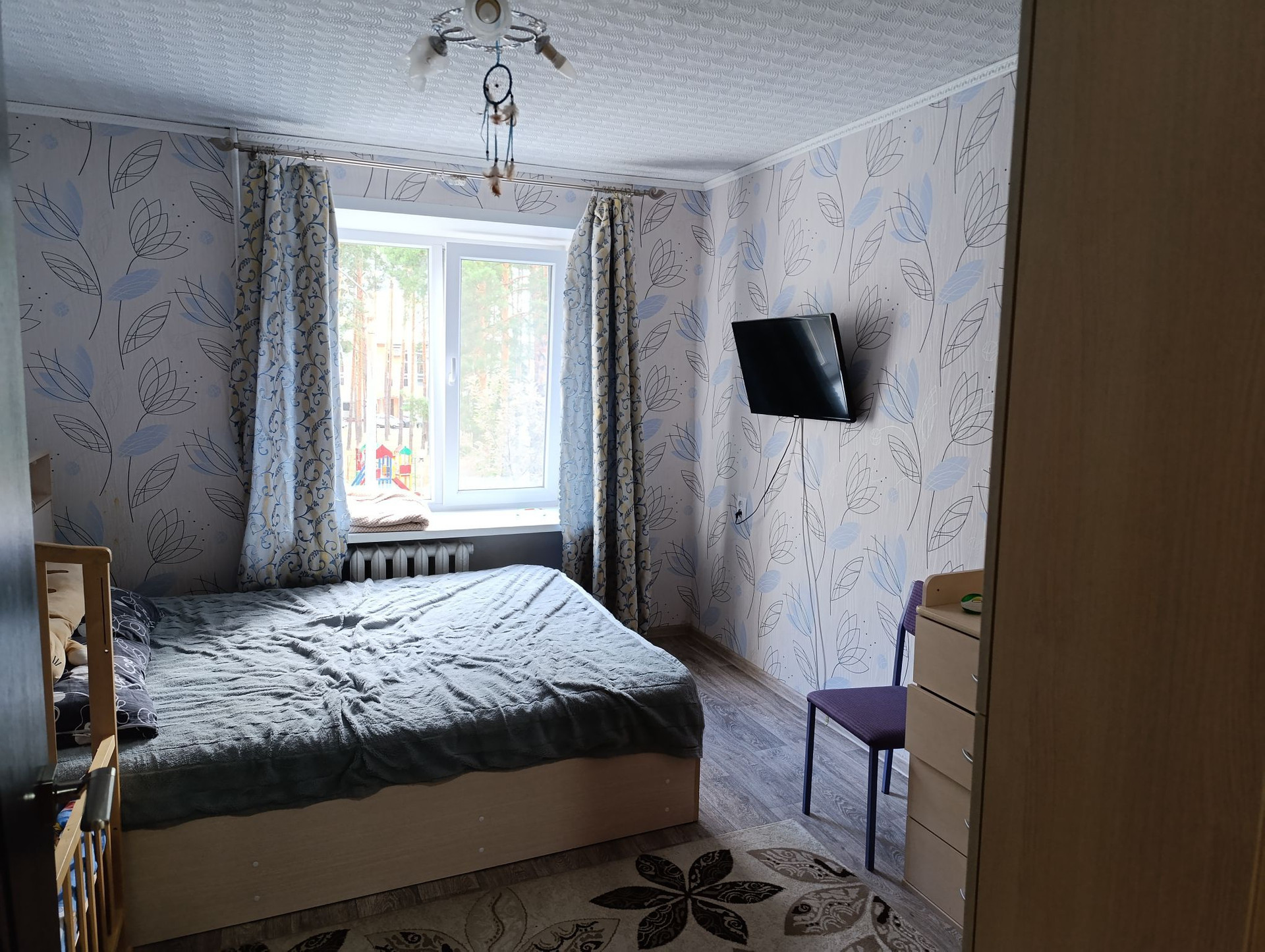 ✅окна выходят на садик и во двор