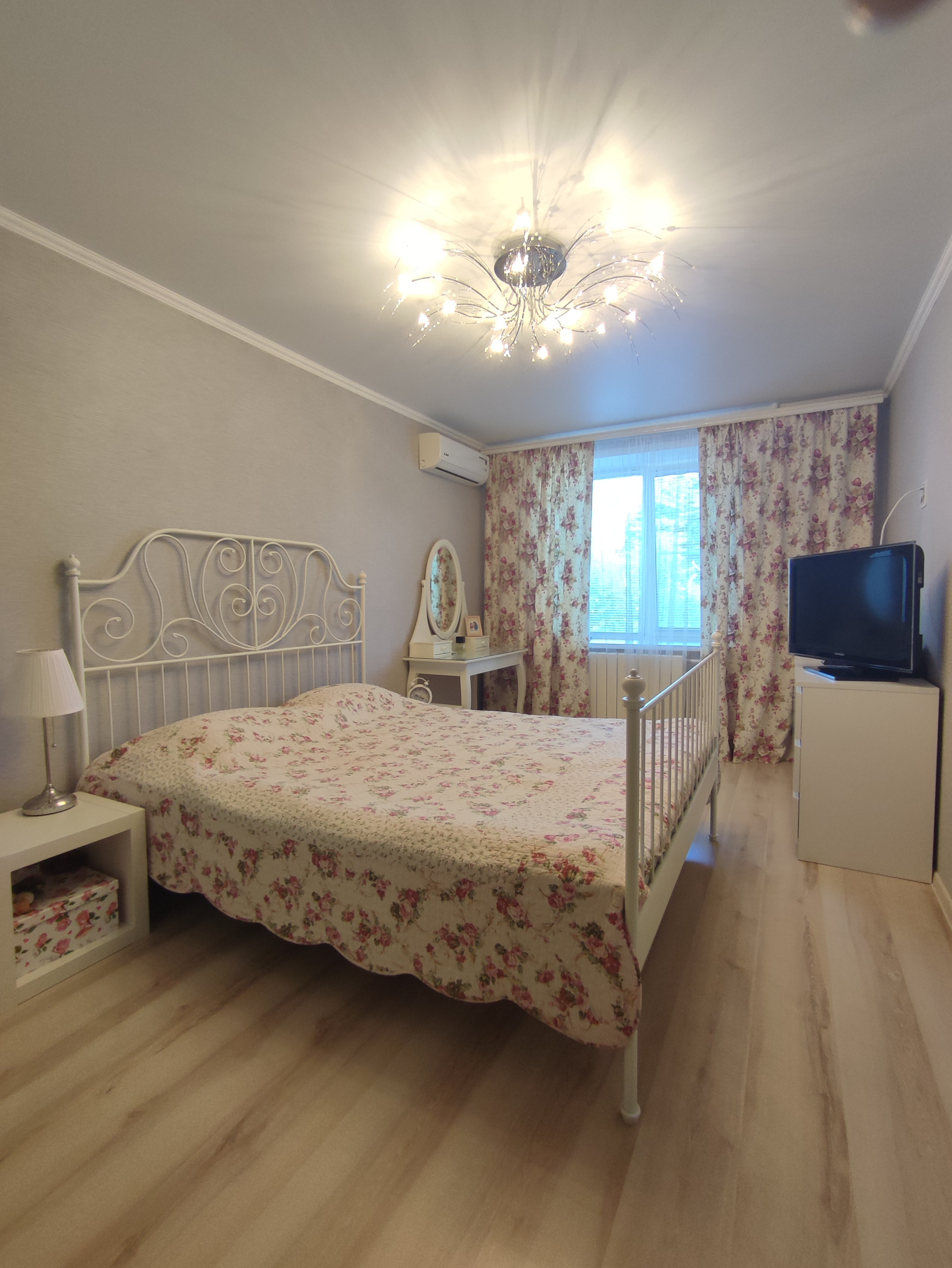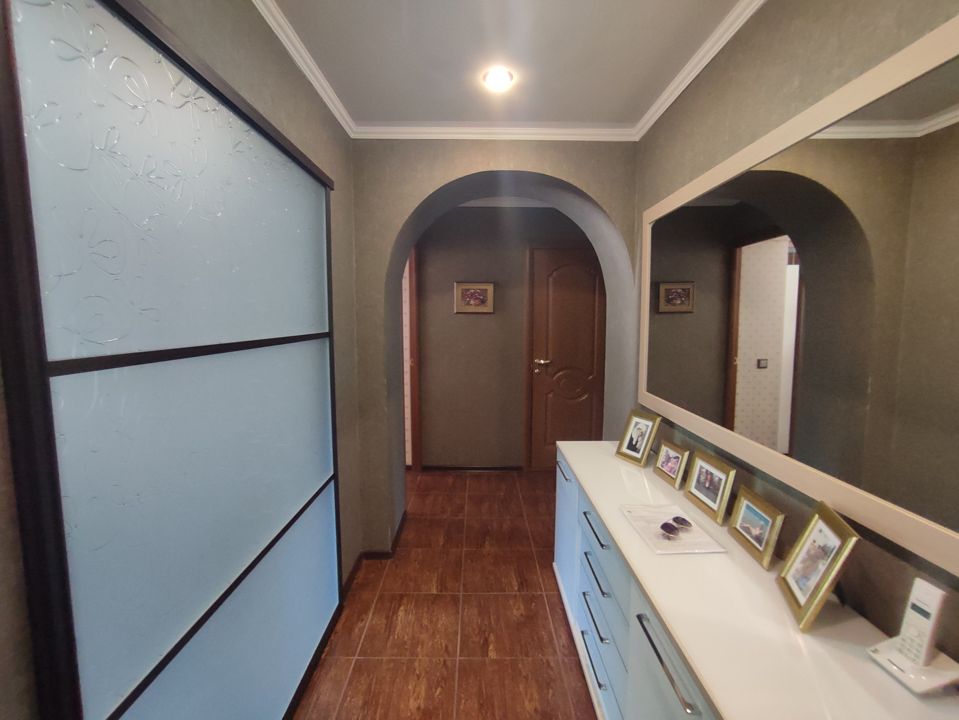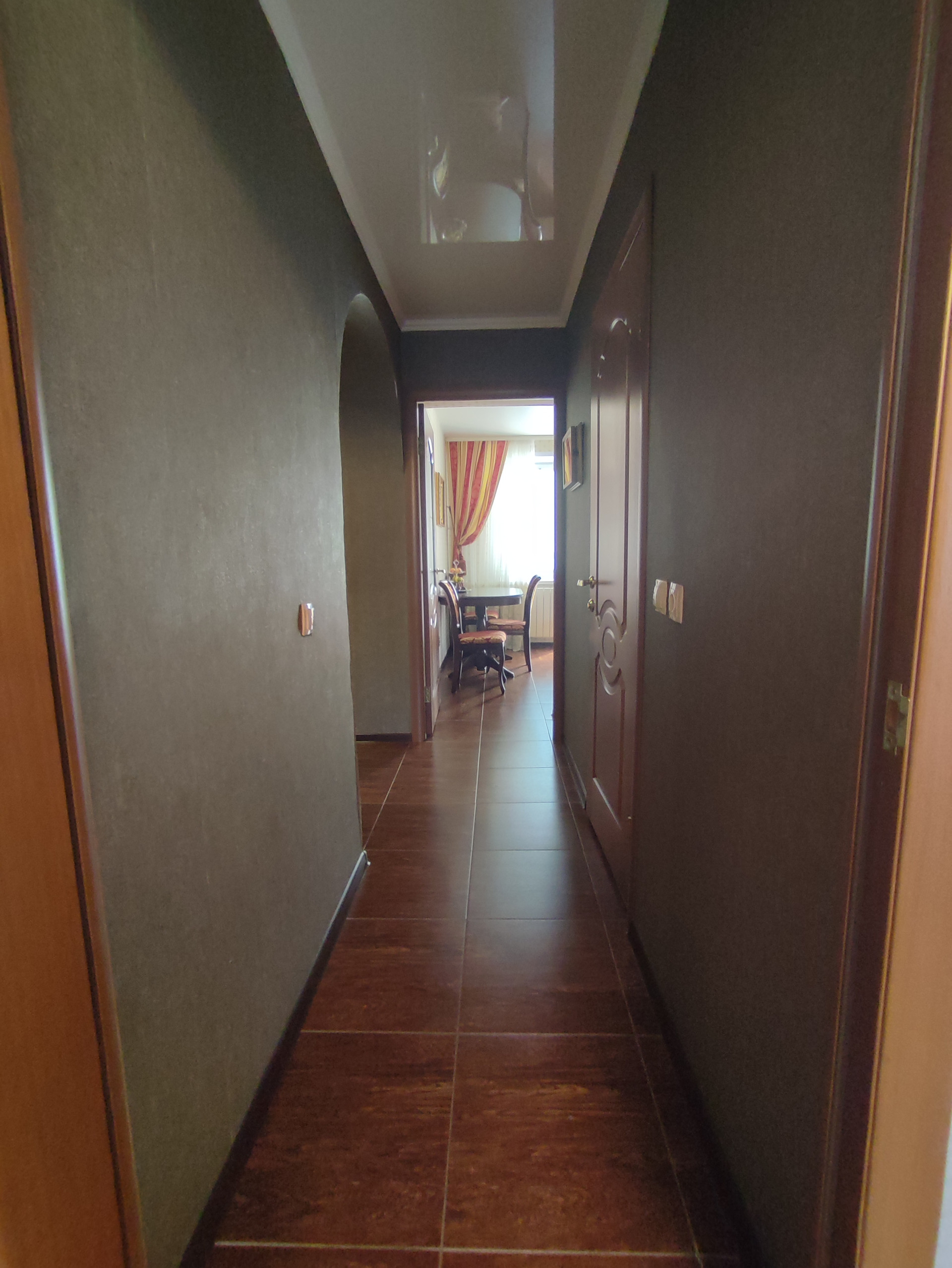 В квартире сделан качественный ремонт, на полу в комнатах ламинат, в проходной зоне коридора и кухни - плитка.