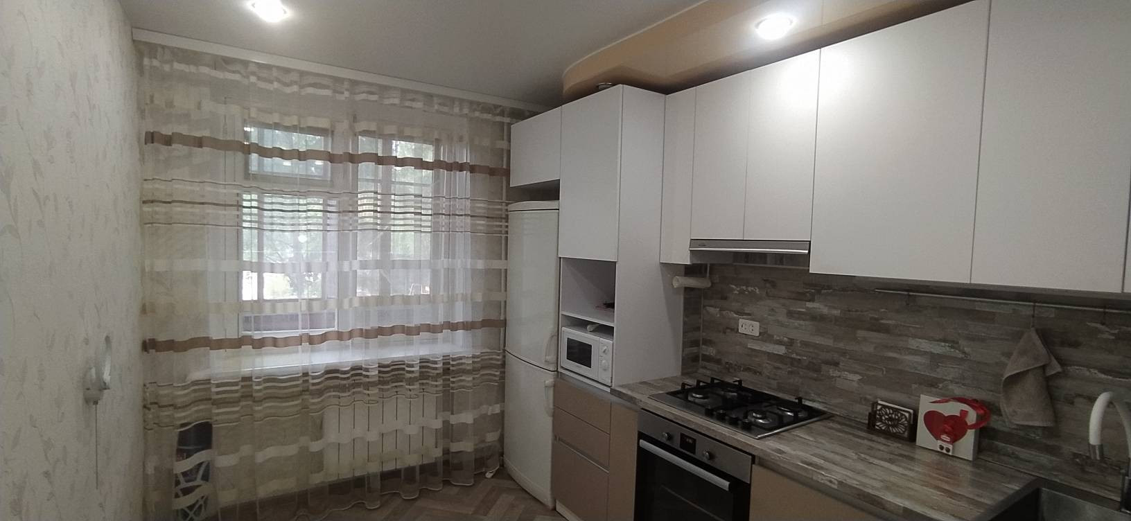 Приятный бонус покупателям - остается кухонный гарнитур с качественными фасадами и фурнитурой, бытовой техникой: вытяжка, духовой шкаф, варочная панель, в эксплуатации  всего 1,5 года.