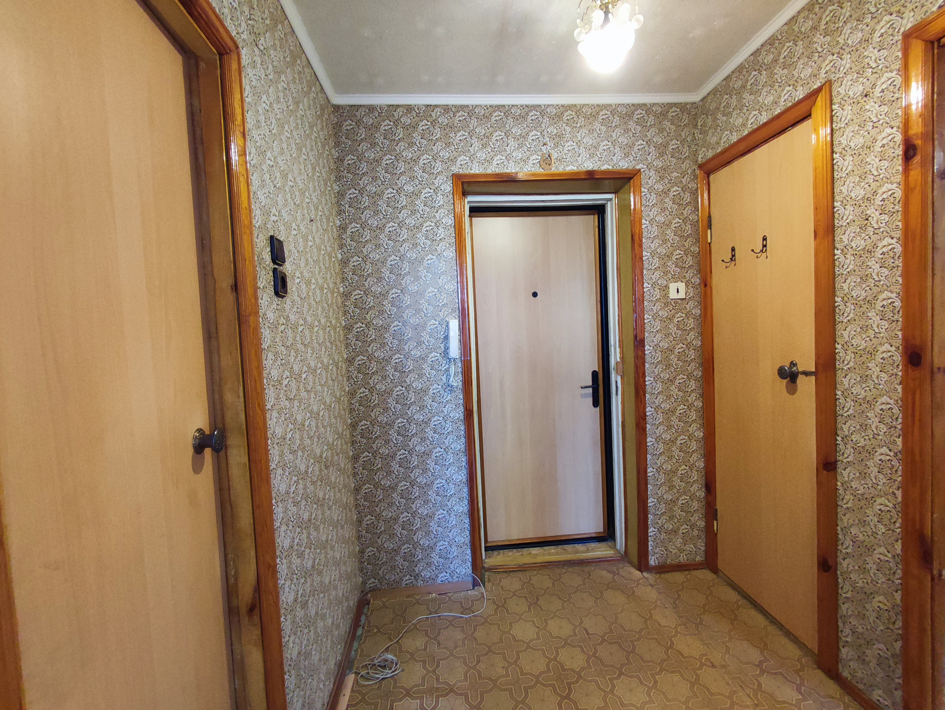 Остается кухонный гарнитур. Есть встроенная гардеробная в прихожей. Сантехника поменяна.