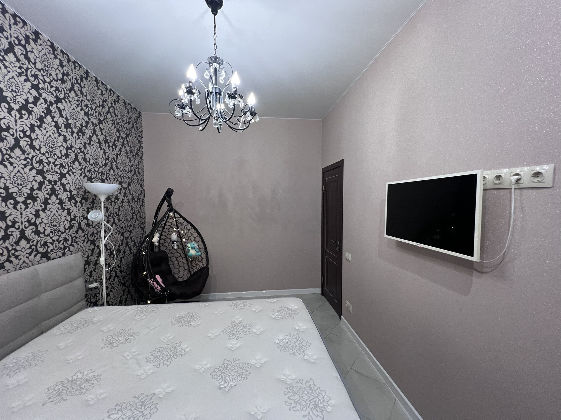 Планировка: кухня-гостиная с панорамным окном 42.3 кв.м, вид из панорамного окна на хвойный красивый лес, гардеробная, три спальни, санузел совмещенный 5,9 кв.м.