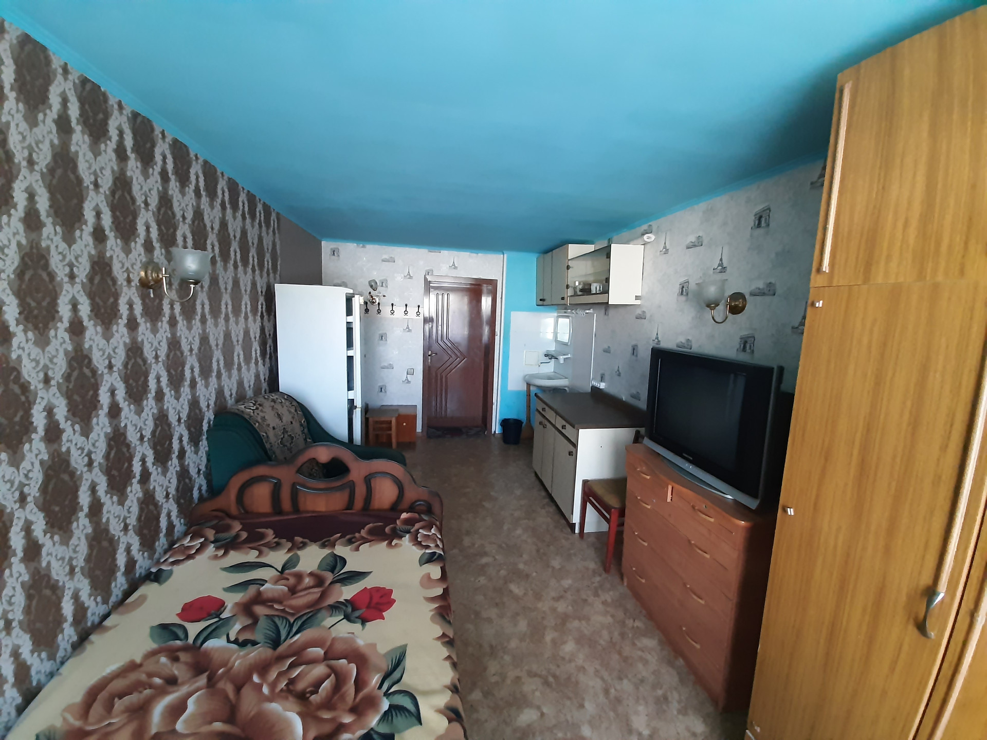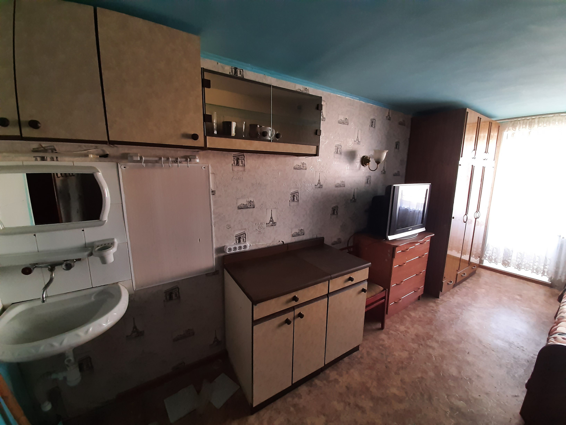 Продается комната, 17м2, железная входная дверь, ровные стены, пластиковые стеклопакеты, балкон. В комнате установлена раковина, заведена вода и выведен слив. Можно выделить зону кухни.