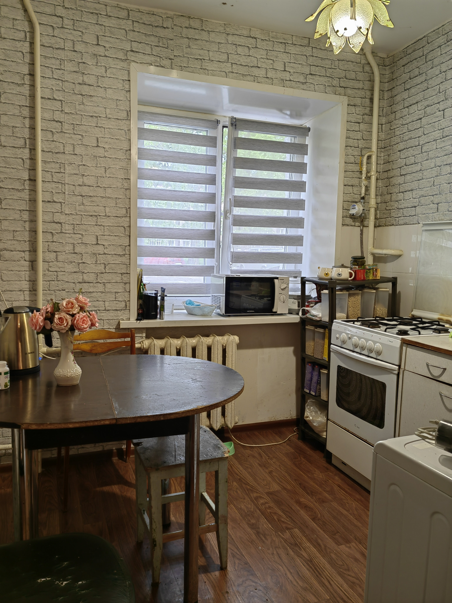 Квартира в хорошем жилом состоянии: окна пластиковые; потолки и стены ровные; хороший линолеум; трубы поменяны; хорошая входная металлическая дверь