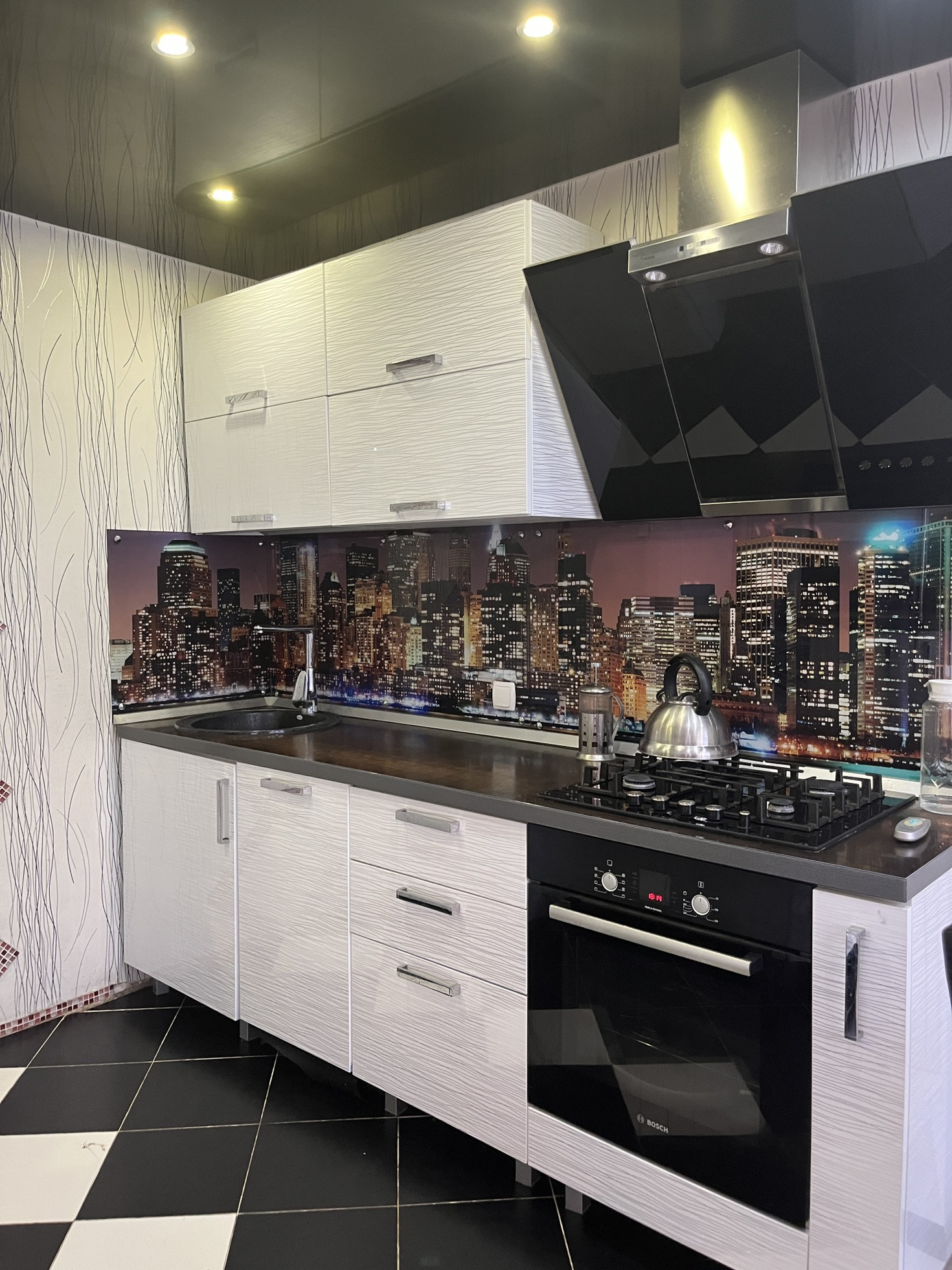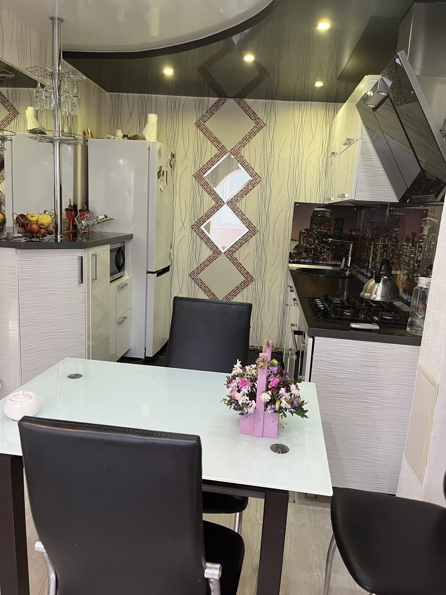 В квартире остается дорогой кухонный гарнитур с доводчиками, барная стойка, диван и шкаф в коридоре. Железная входная дверь, домофон с функцией видео.