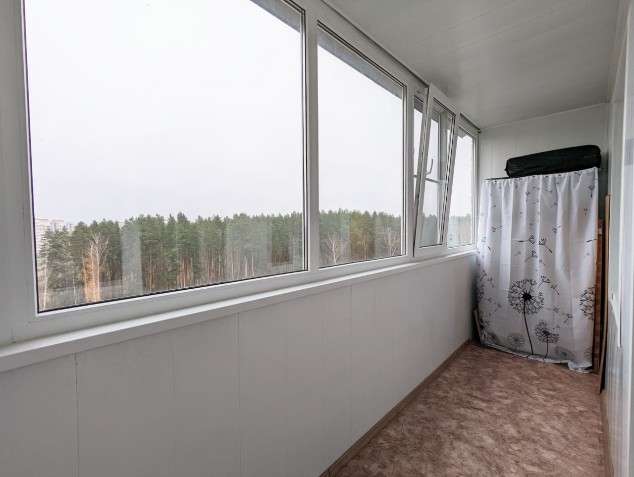 Большая застекленная, утепленная лоджия. В квартире остается кухонный гарнитур, шкаф-купе в коридоре.