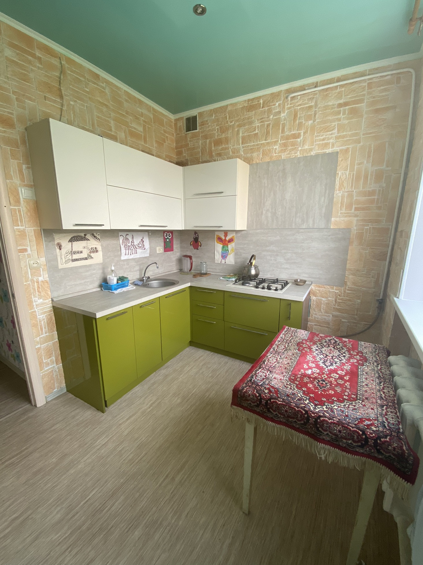 Установлены пластиковые окна , натяжные потолки , новые радиаторы отопления , качественные межкомнатные двери , напольное покрытие -линолеум .