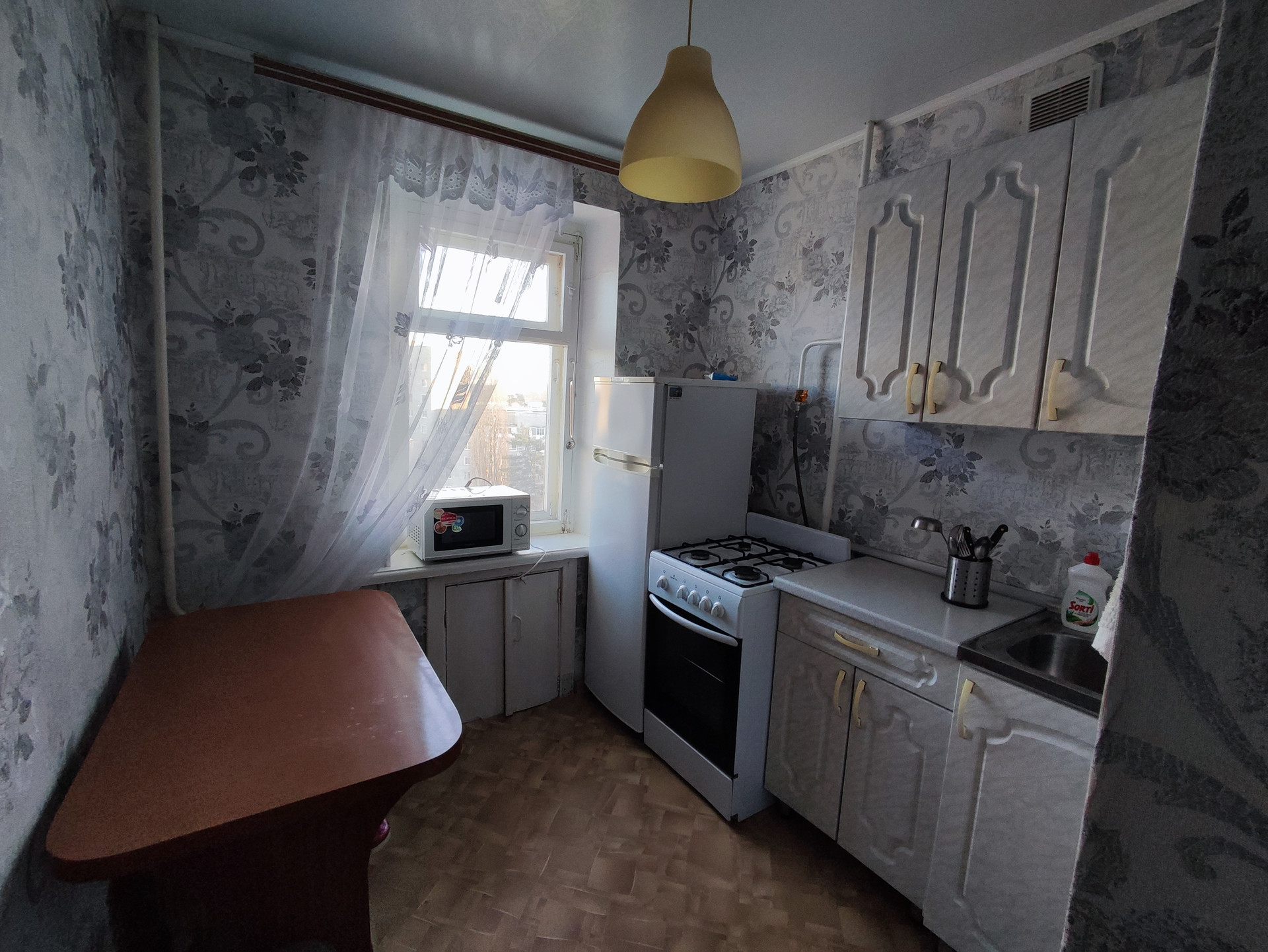 Очень светлая солнечная квартира. Чистый без запахов подъезд, спокойные и порядочные соседи. Просторная стоянка рядом.