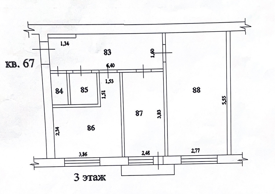 Продам 2х ком. квартиру , пл. 50 кв.м на 3 этаже по ул. Ленина 45