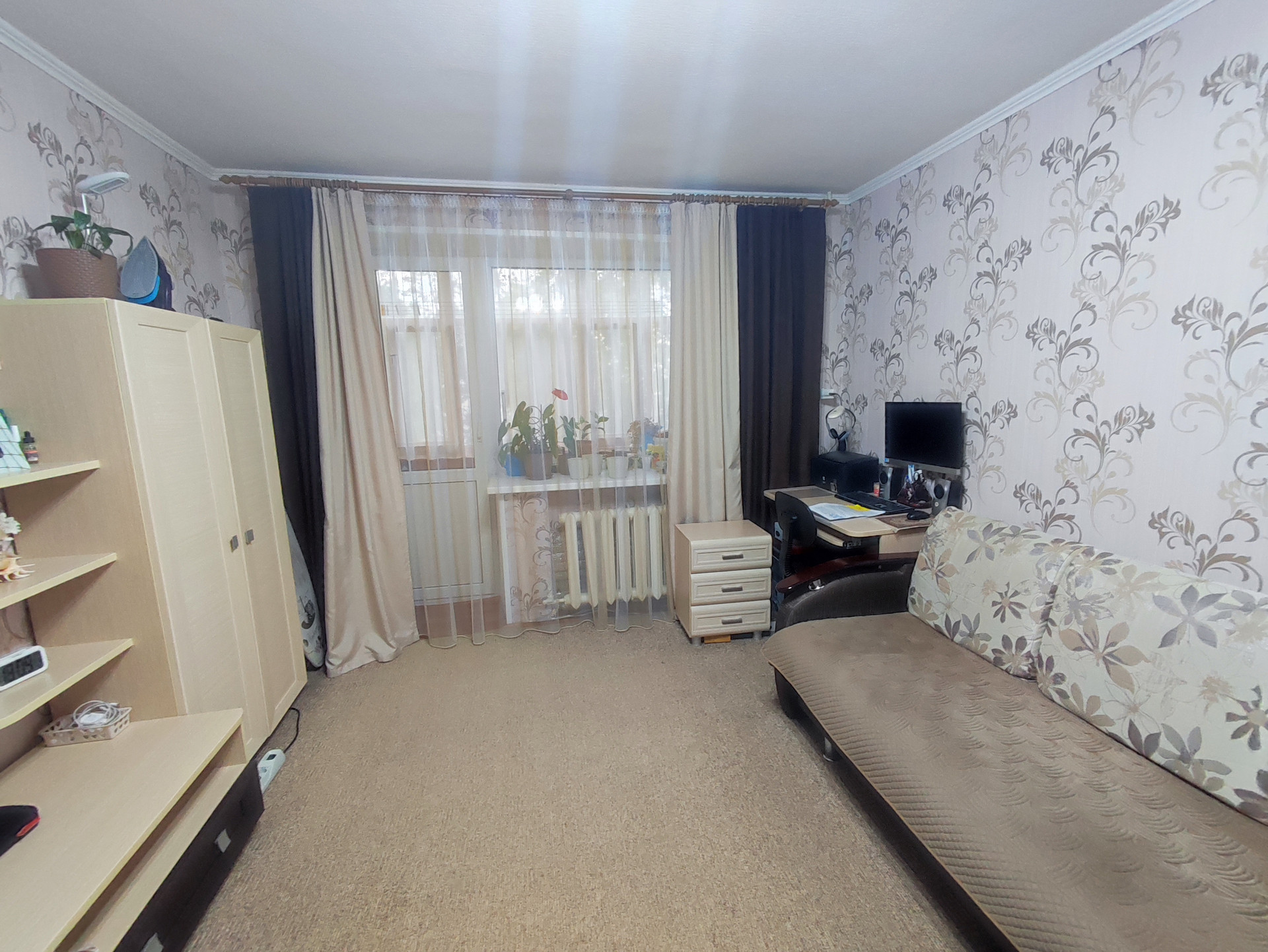 В квартире выполнен качественный ремонт: в коридоре и на кухне на полу  линолеум, в санузле кафельная плитка, в жилых комнатах ковролин, во всех комнатах  установлены пластокна, входная металлическая дверь.