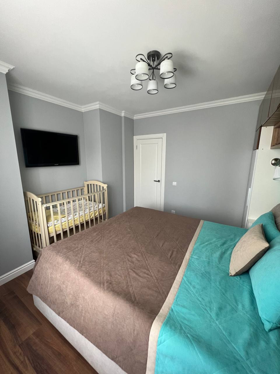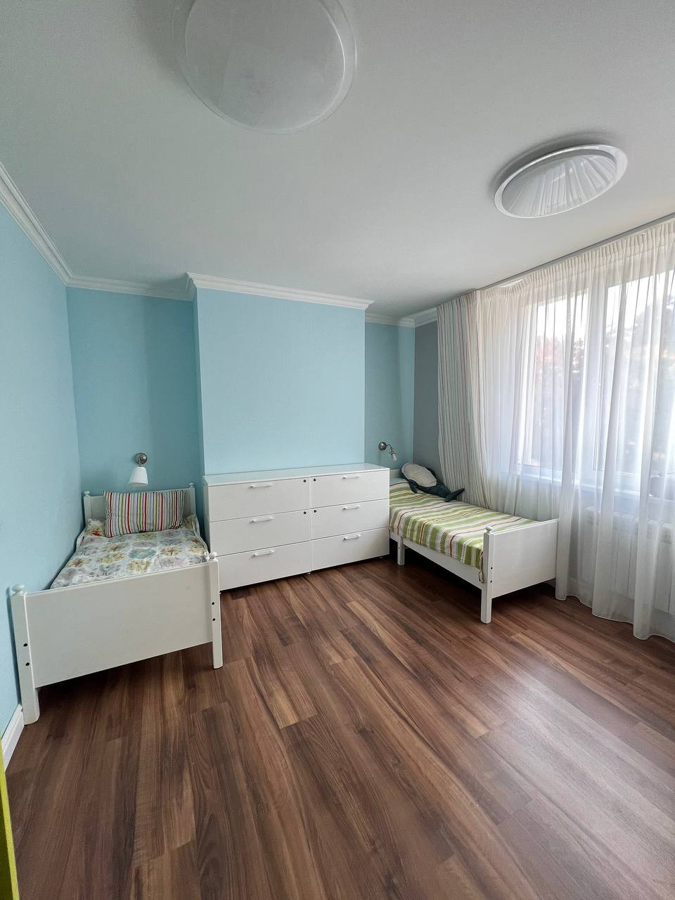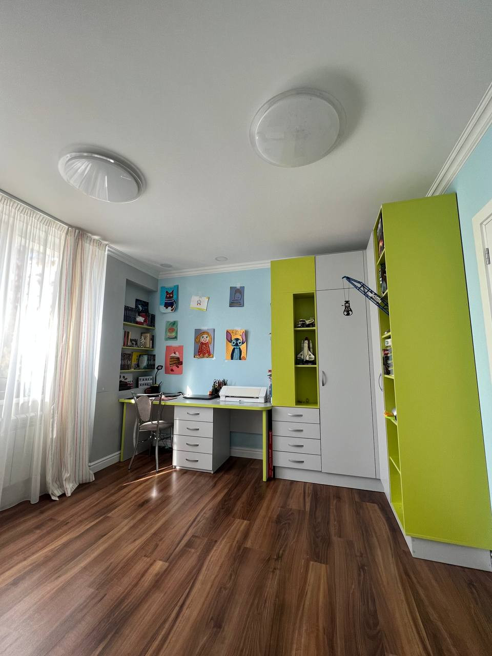 - Готовая спальная комната для ребенка или двух детей - есть большой встроенный стол, шкаф для хранения вещей и книг.