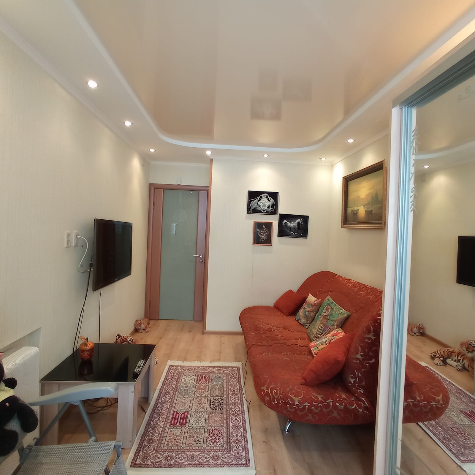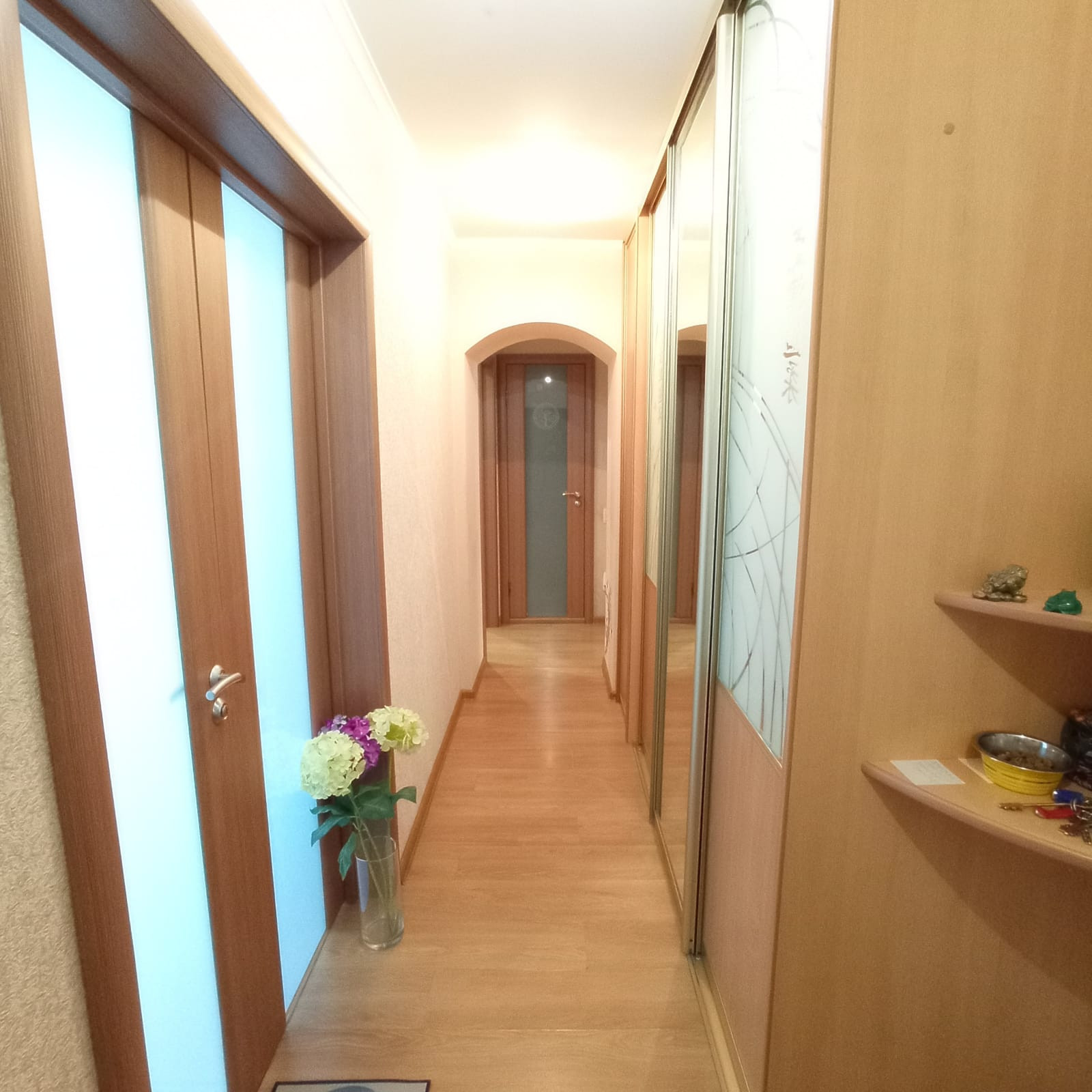 В квартире сделан капитальный ремонт: заменена проводка, трубы, стены утеплены и выровнены по маякам, стяжка пола.