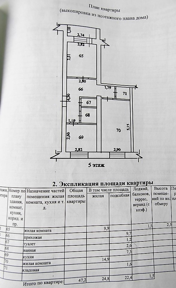 Общая площадь 47.2 м2