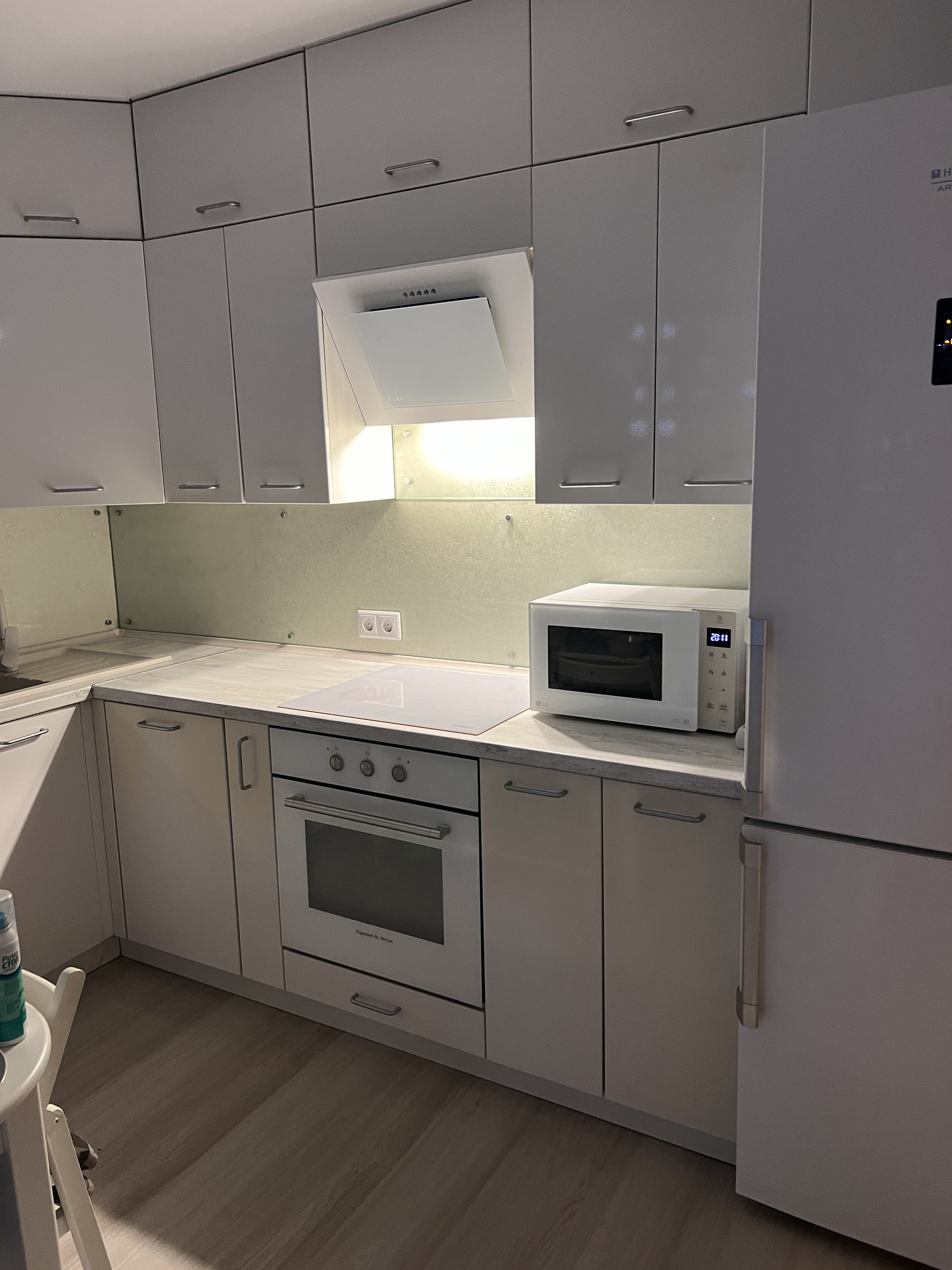 В квартире остаётся кухонный гарнитур (с посудомойкой), встроенные шкафы в прихожей и спальне, навесная мебель в ванной и туалете, водонагреватель. В гостиной установлен кондиционер.