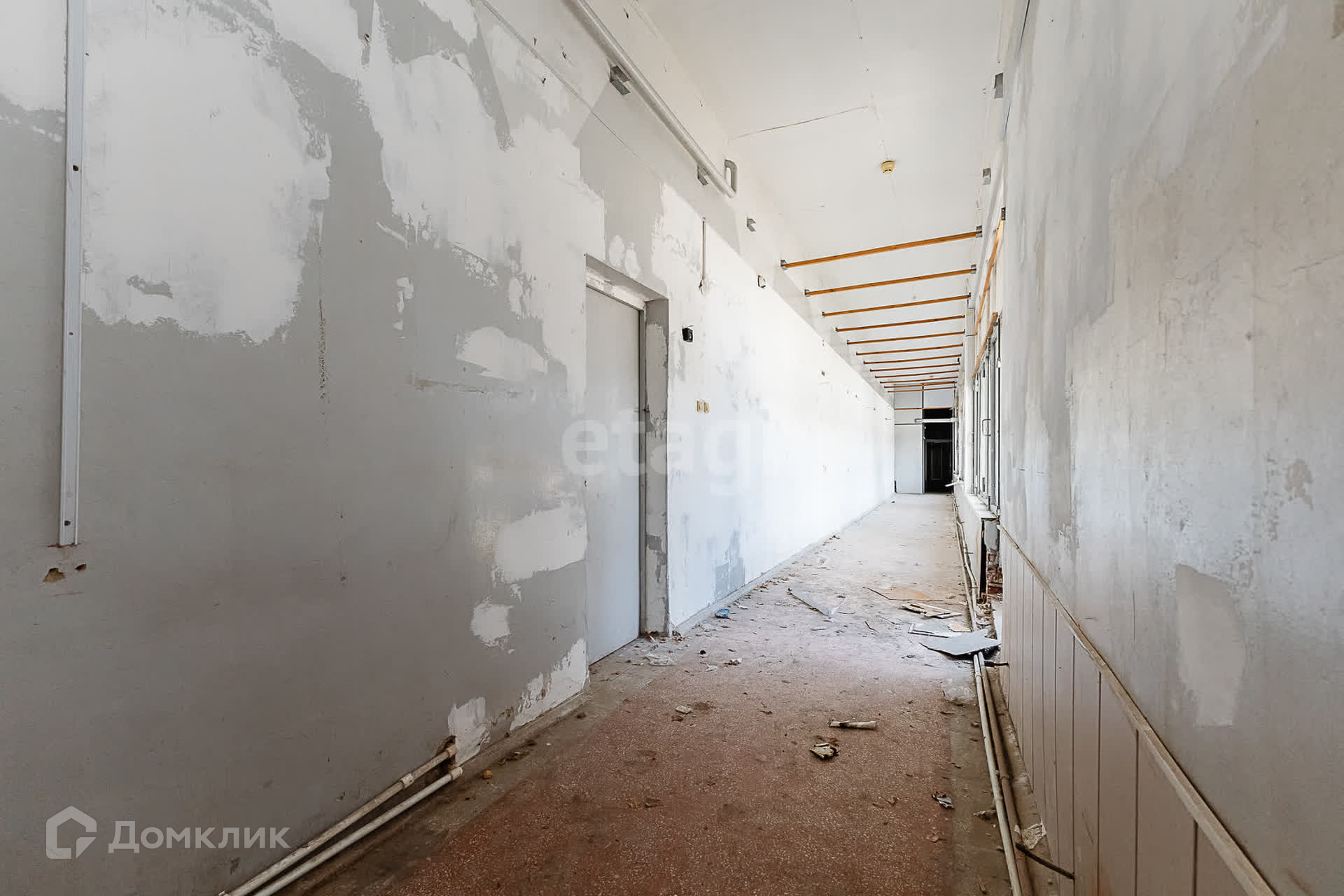 Ширина помещения 2,1 м, но можно увеличить до 2,5 м за счет оконного пролета ( убрать одно окно), заменив его на стеклопакеты, а это уже 70-75 кв.м общей площади. Длина помещения 30 м. Высота потолков 4,0 м. Есть место для сан.узла. Имеется вытяжка.